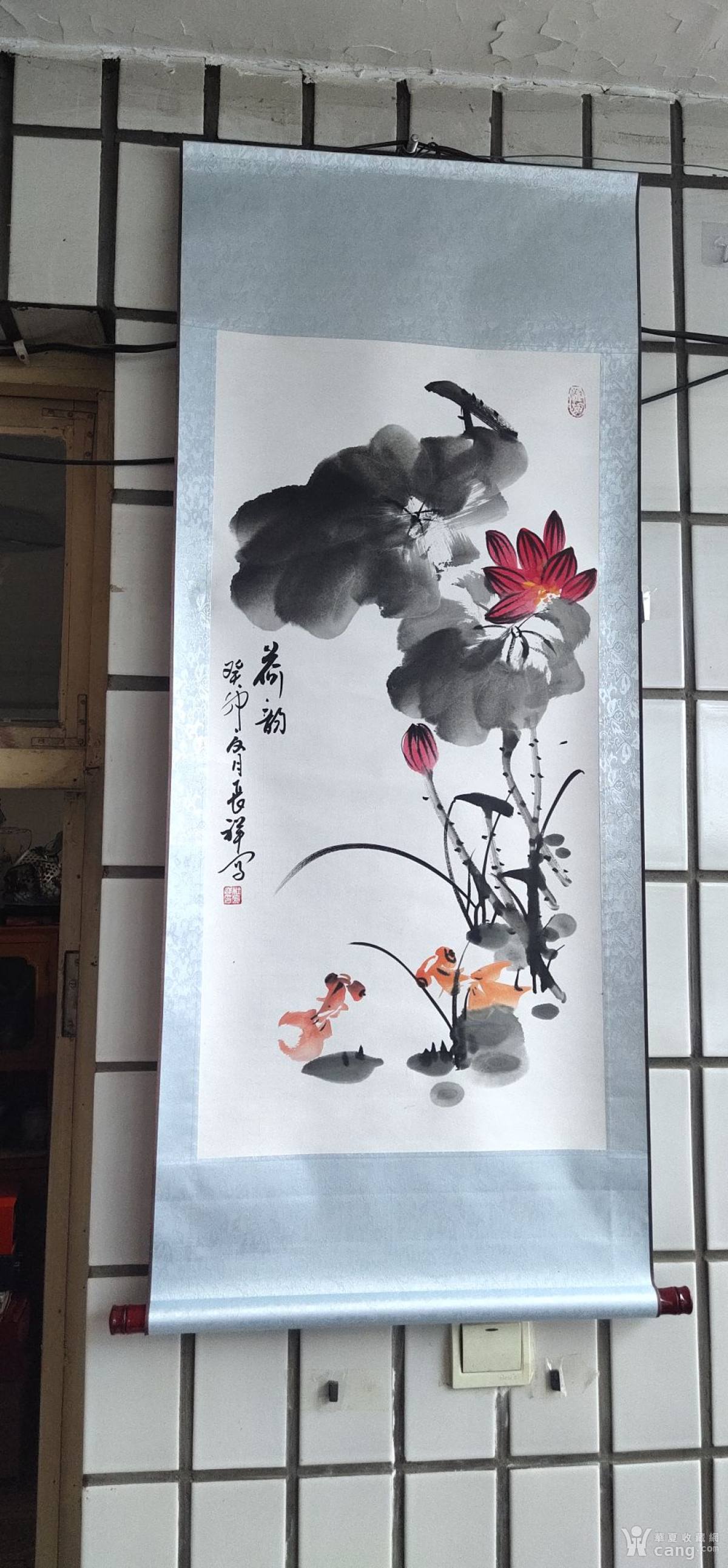 著名画家杜长祥荷花金鱼图。杜长祥,山东潍坊人,清华美院研究生