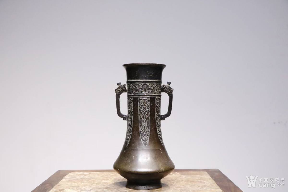 双耳饕餮纹【花器】;青铜造型,古朴且线条优美,包浆皮色自然,