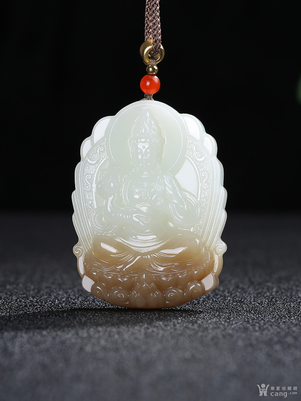 [持莲观音]和田玉糖白玉观音莲花仿古挂件吊坠g
