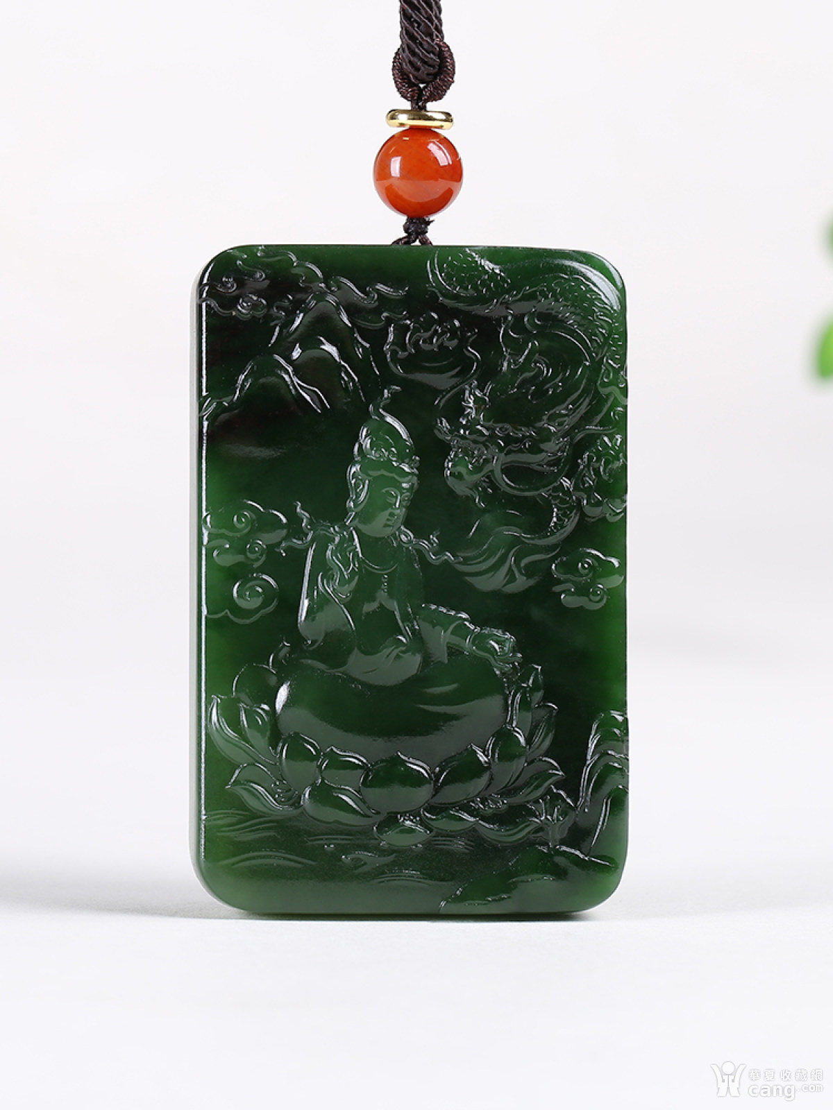 [普渡众生]和田玉碧玉观音生肖龙山水牌子挂件吊坠g