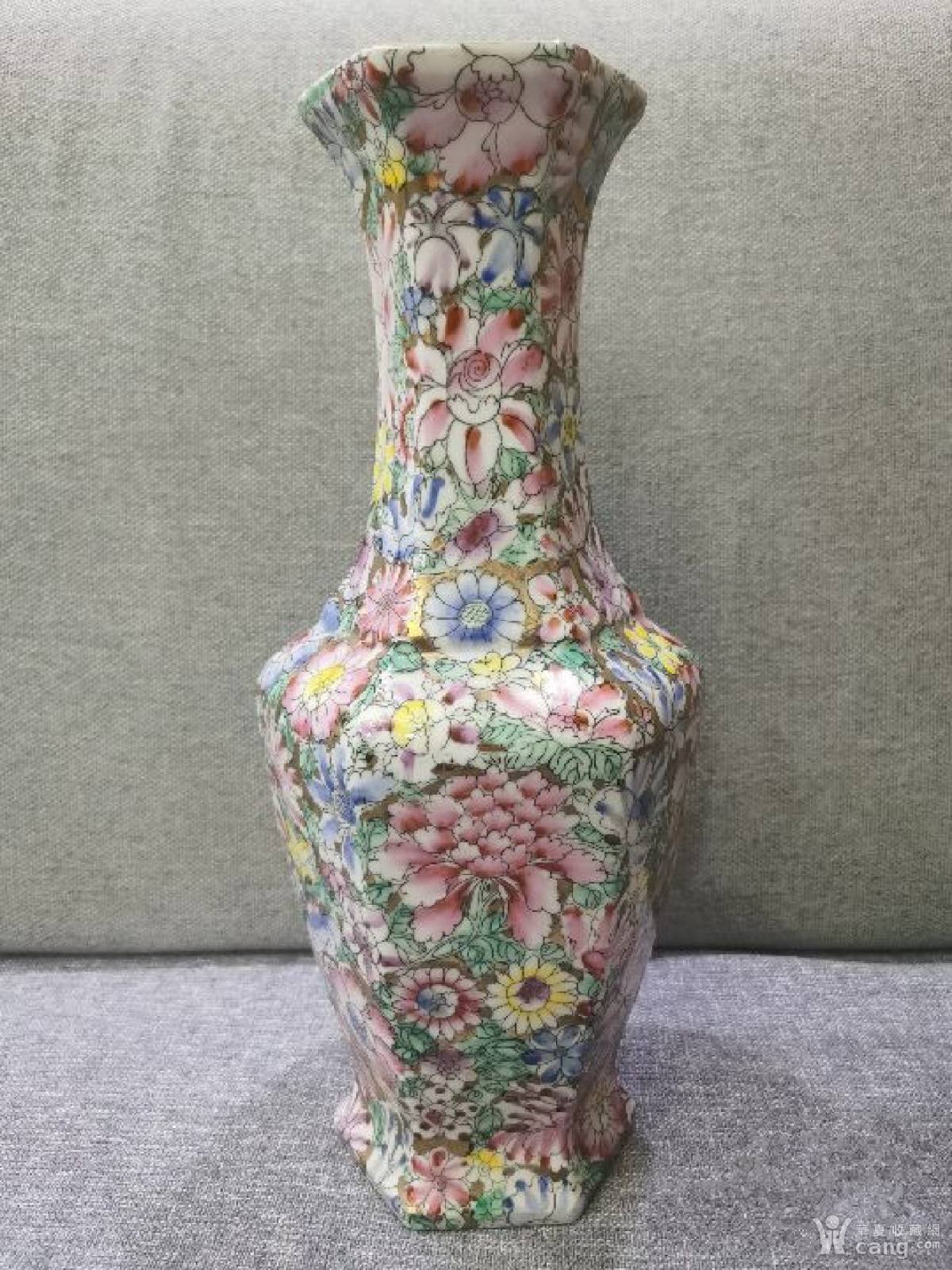 民国时期百花不落地六角如意瓶