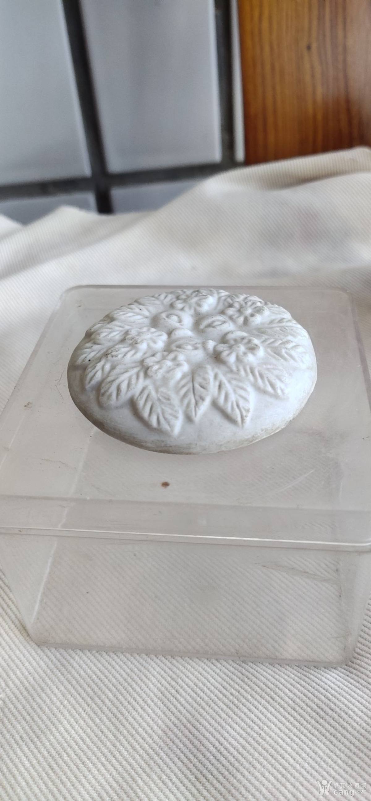 清代浮雕刻花桂花纹白釉糕点压花模子一个,完整。
