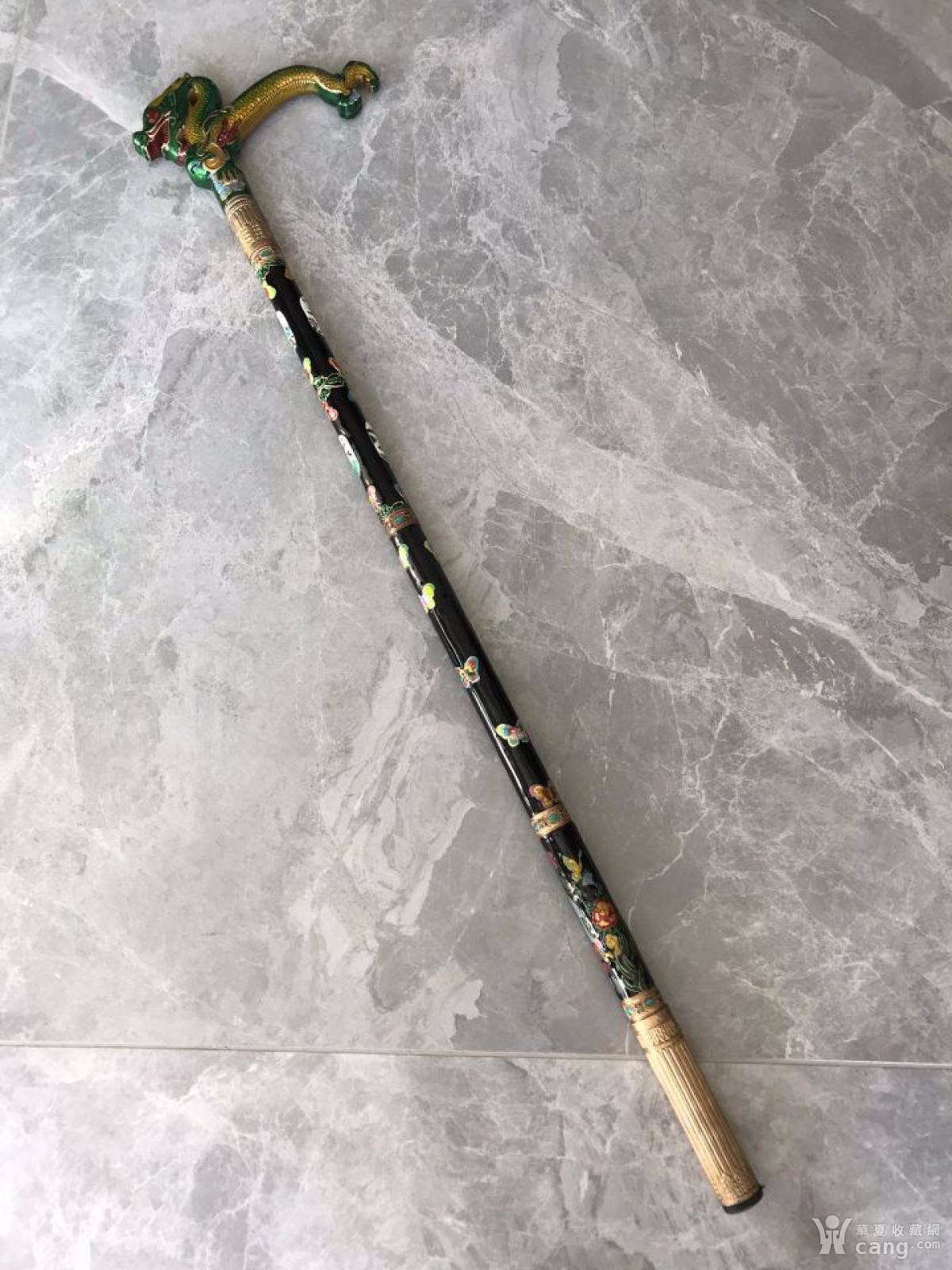 回流精品景泰蓝烤蓝龙头拐杖
