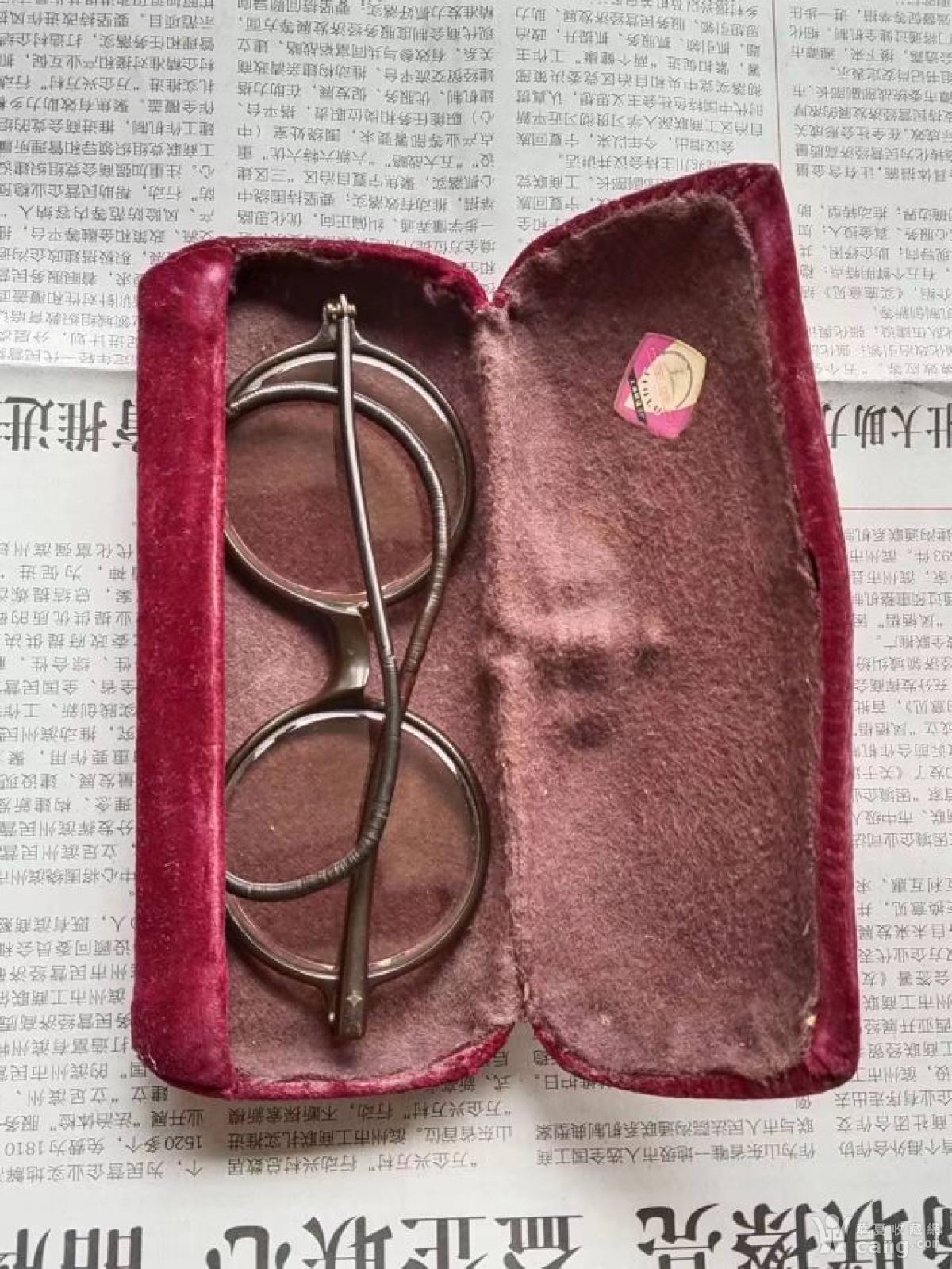清代红料框架大镜片平光水晶石老眼镜