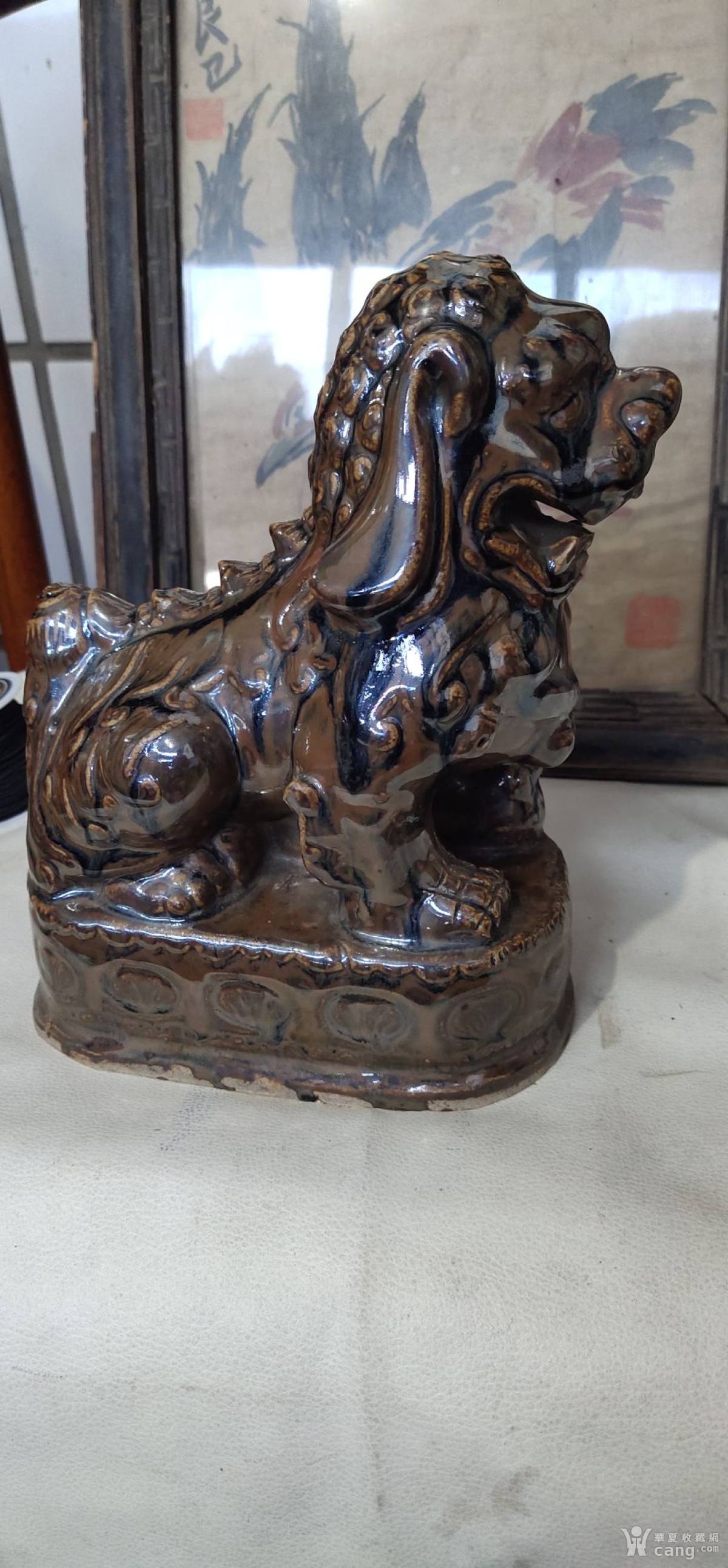 清代紫金釉浮雕案头狮文房摆件一个,完整。