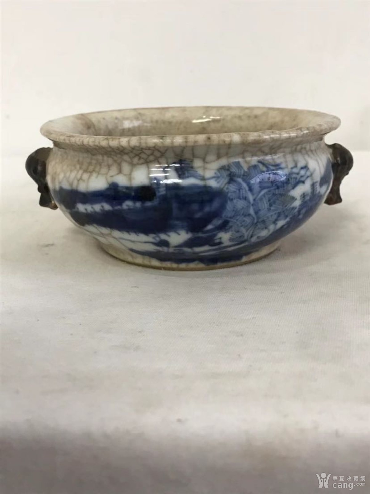 清代中期的哥釉青花双兽耳炉