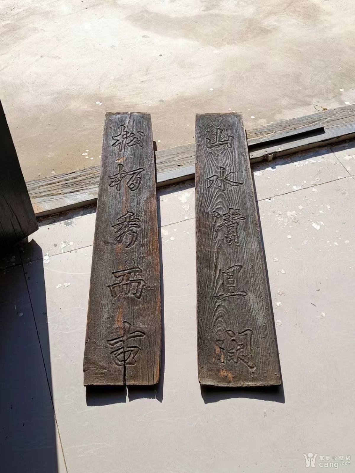 『悬陈古器 • 文房挂联』 明代,松柏木,长75宽14,此