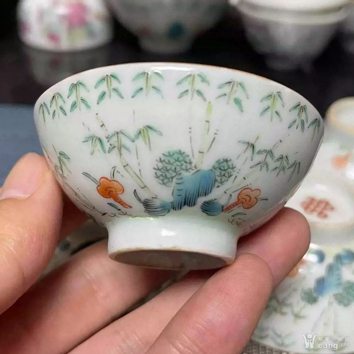 粉彩竹林瓷茶杯
