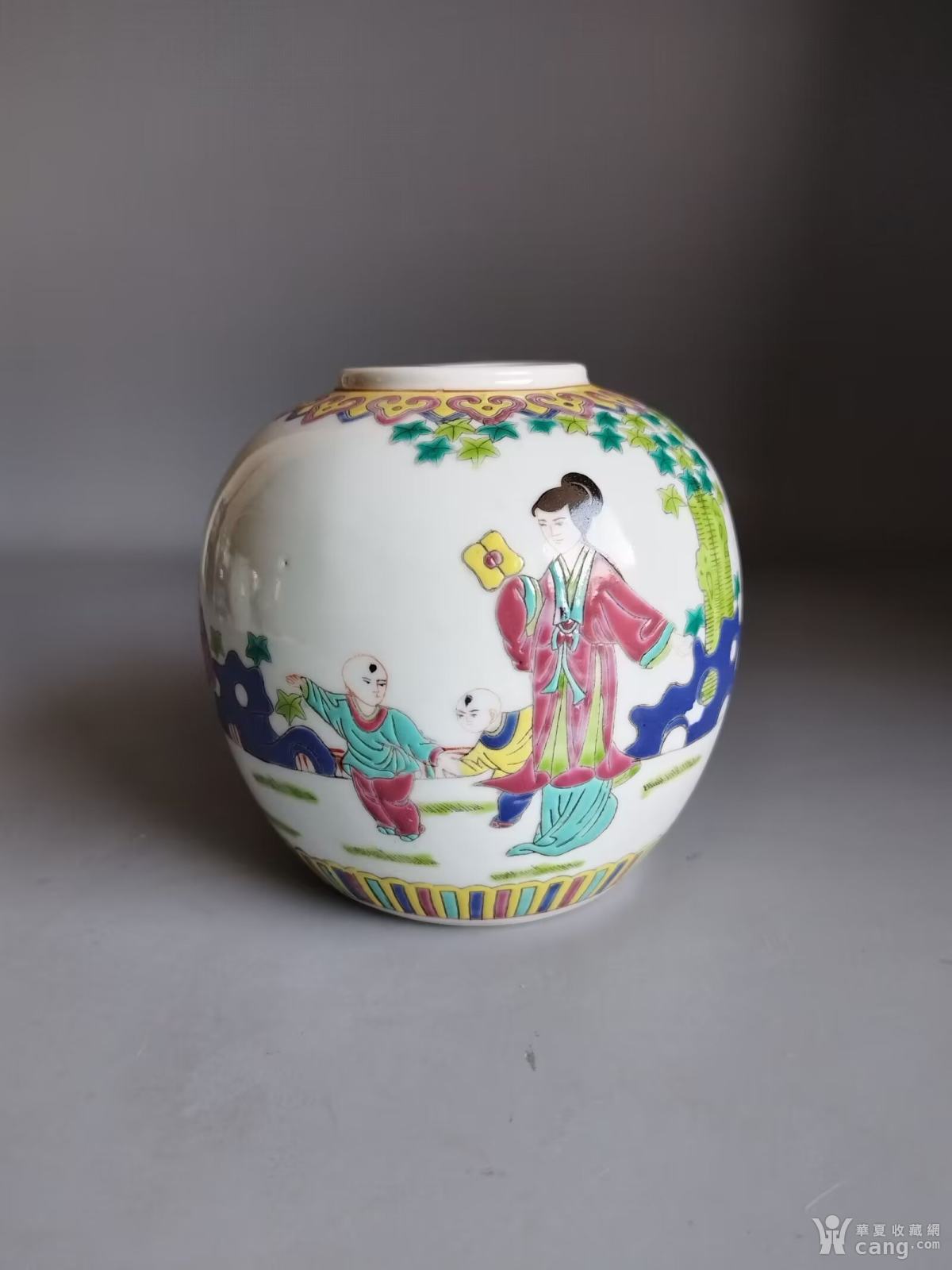 民国粉彩三娘教子人物罐 全品