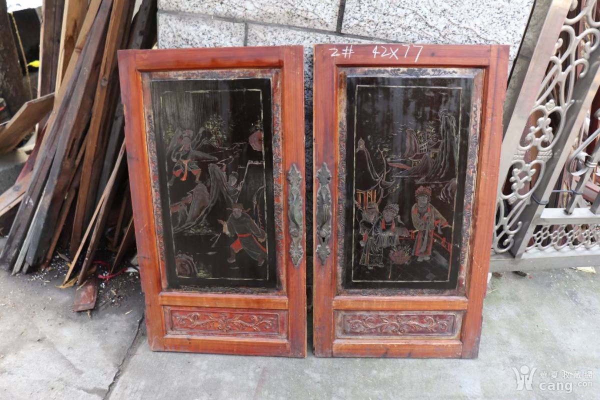 民俗老物件怀旧老家具,高年份老木雕水影画柜门一对,花板,挂