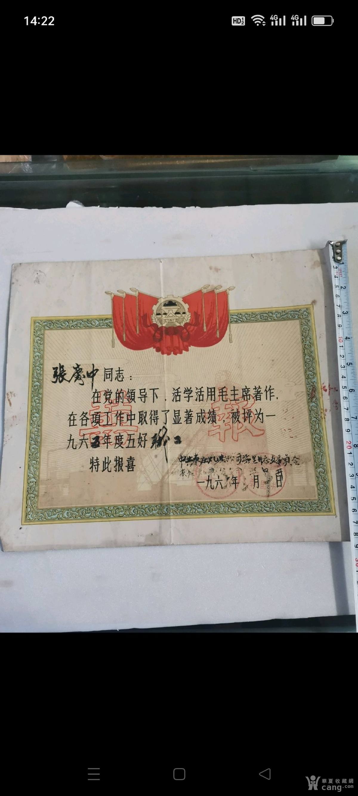 一九六六年喜报1张。张某某被评为六五年度五好职工。品相如图包
