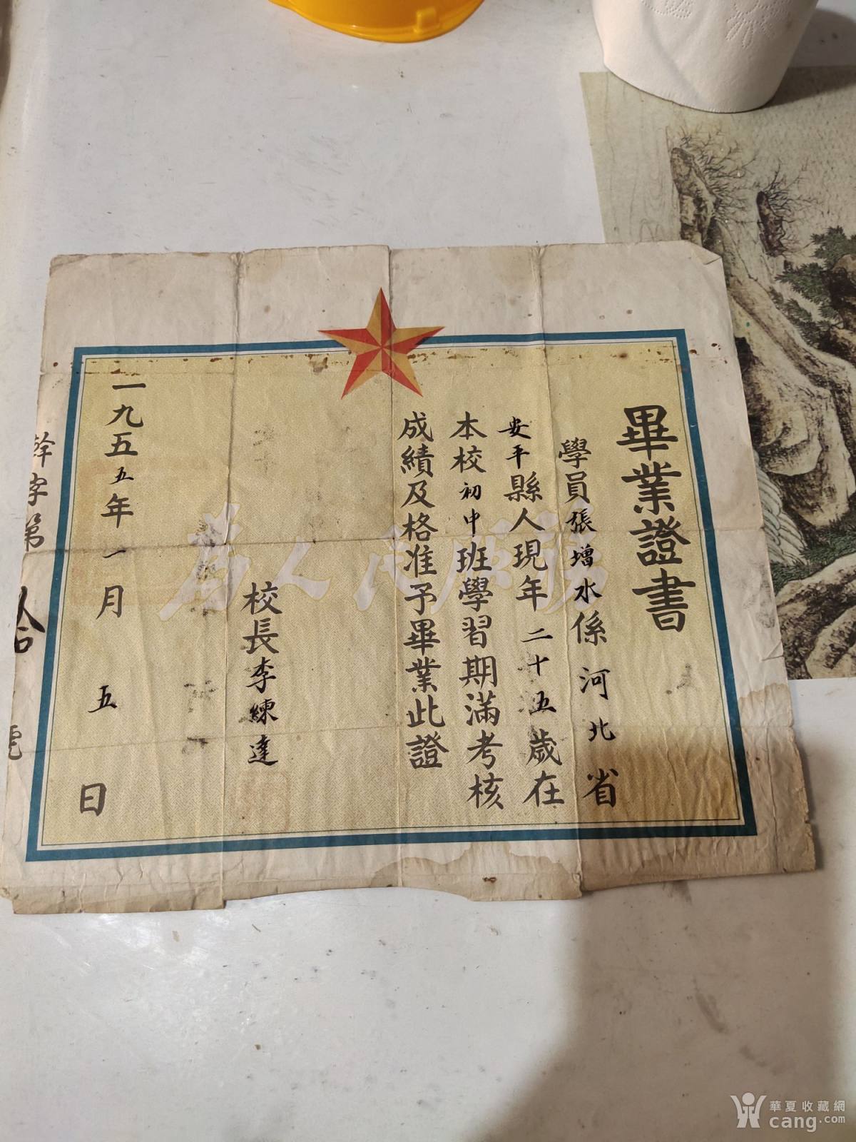 1955年,河北省衡水市安平县初中毕业,证一张,完整。