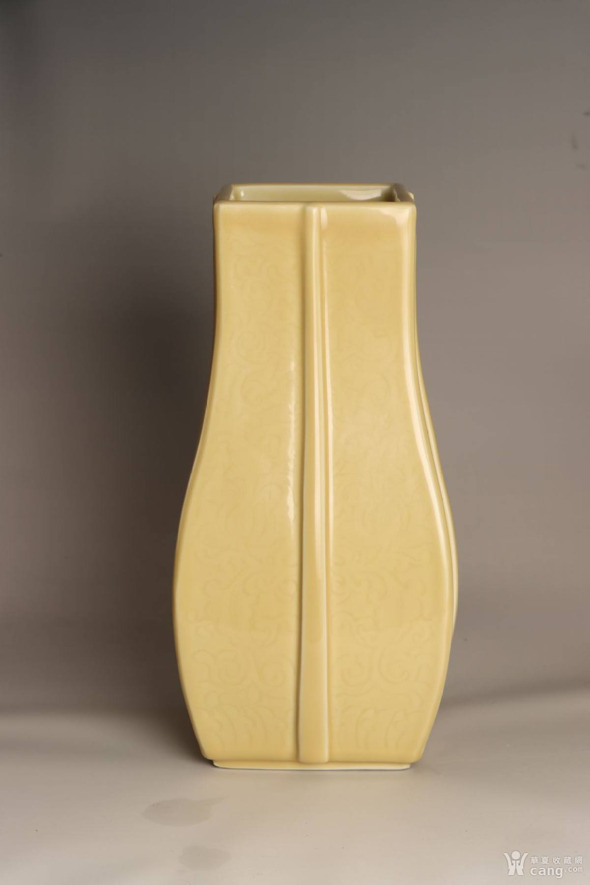 建国瓷厂 柴窑烧制 60年代 黄釉刻花 芭蕉瓶