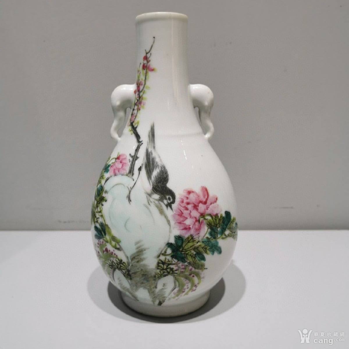 清代粉彩花鸟象耳瓶