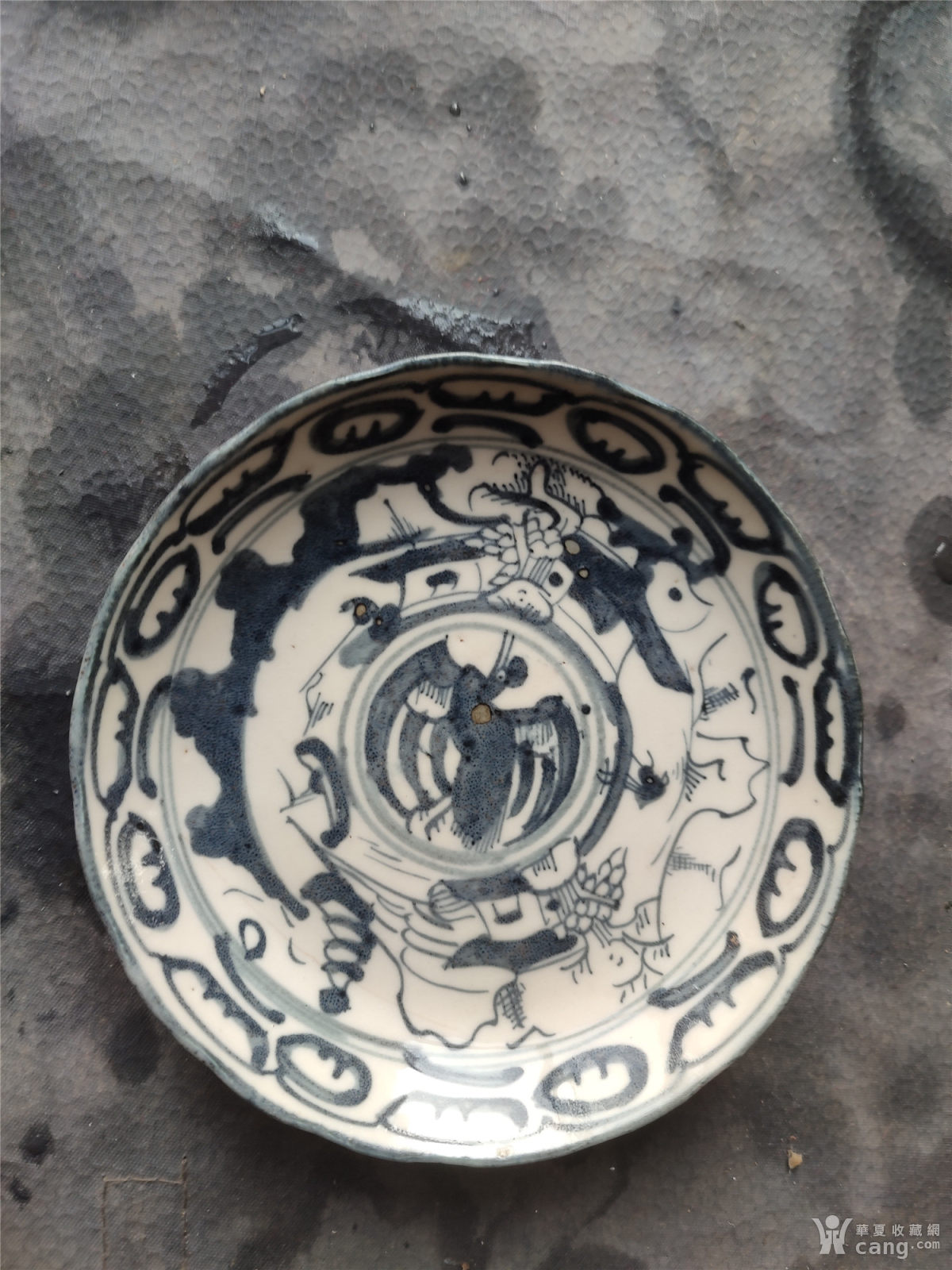 青花瓷器盘子,有一条冲线如图所示,其余完好,直径14厘米