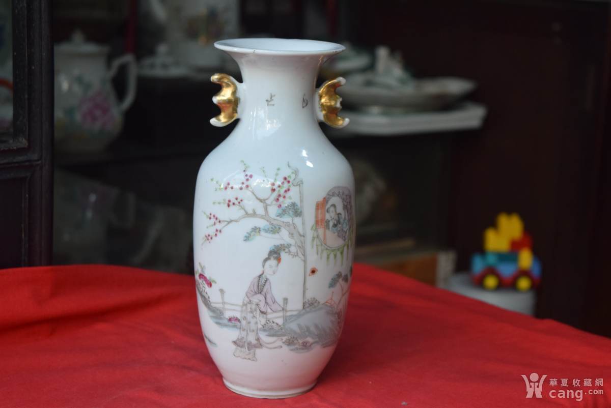 民国早期粉彩仕女人物纹瓶(包老)对2