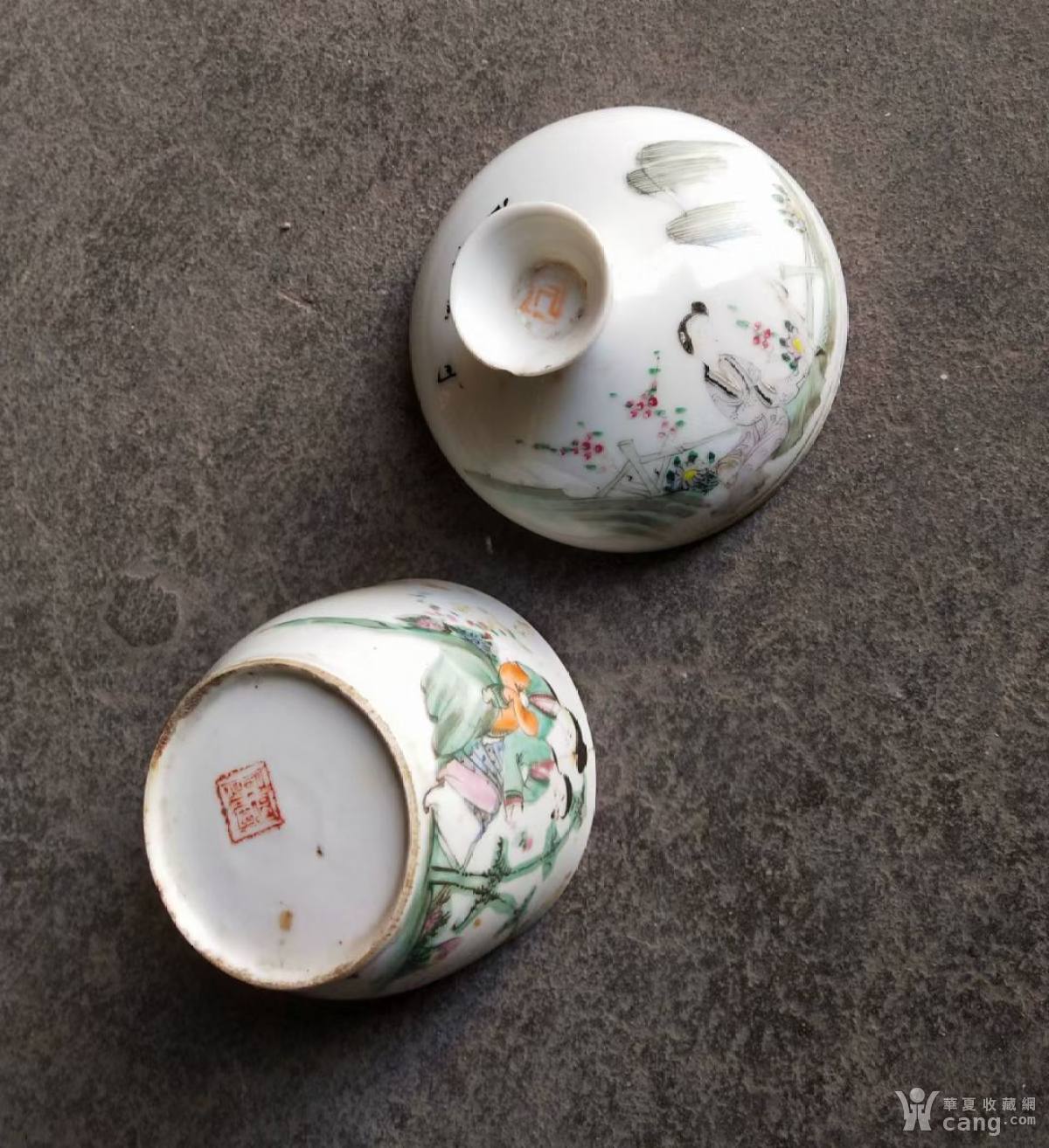 民国粉彩仕女扣缸底和盖子