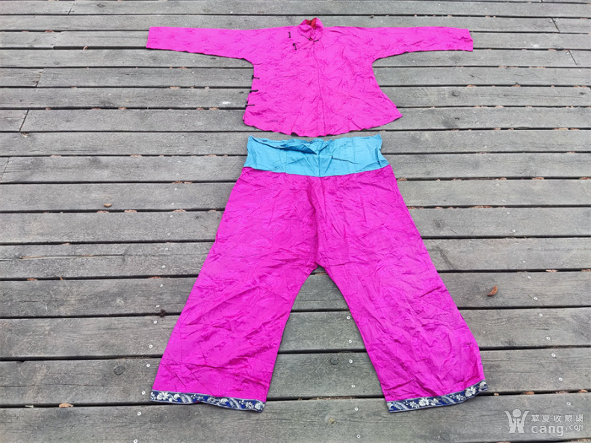 民国时期新婚女子穿的红丝绸大襟上衣及裤子一套