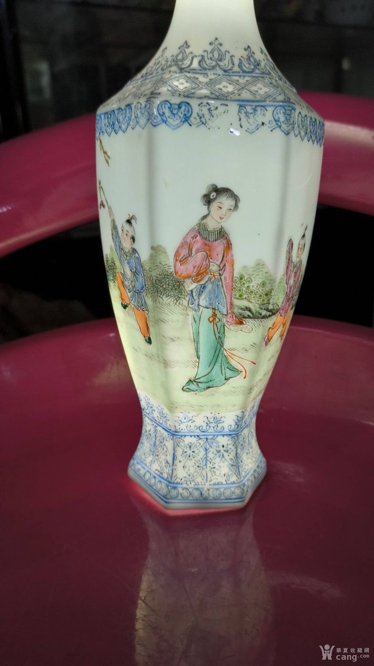 全手绘粉彩“三娘教子”纹蛋壳胎六方瓶