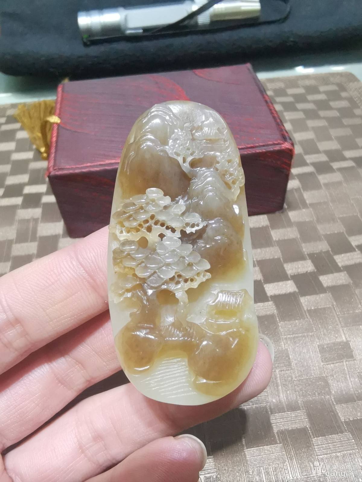 回流创汇的物件和田玉兽面满工珠子一对E155