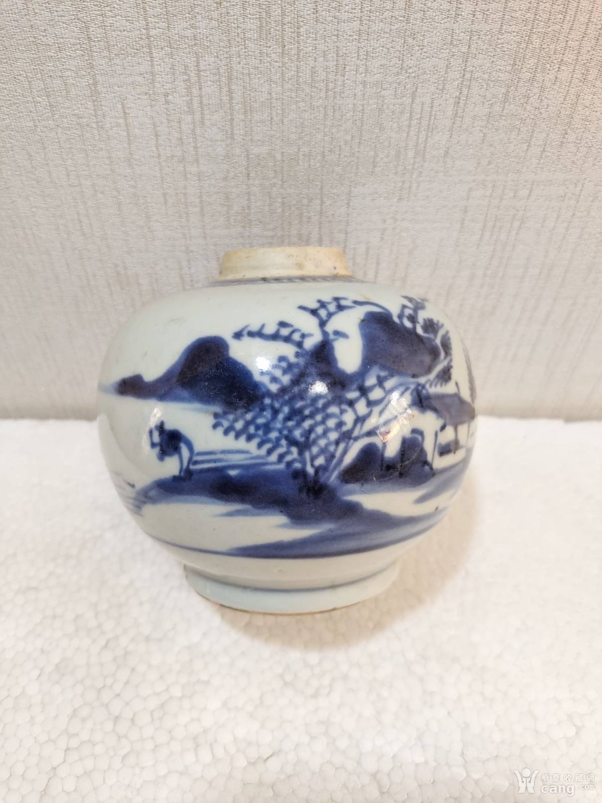 清代的青花山水人物苹果蹲