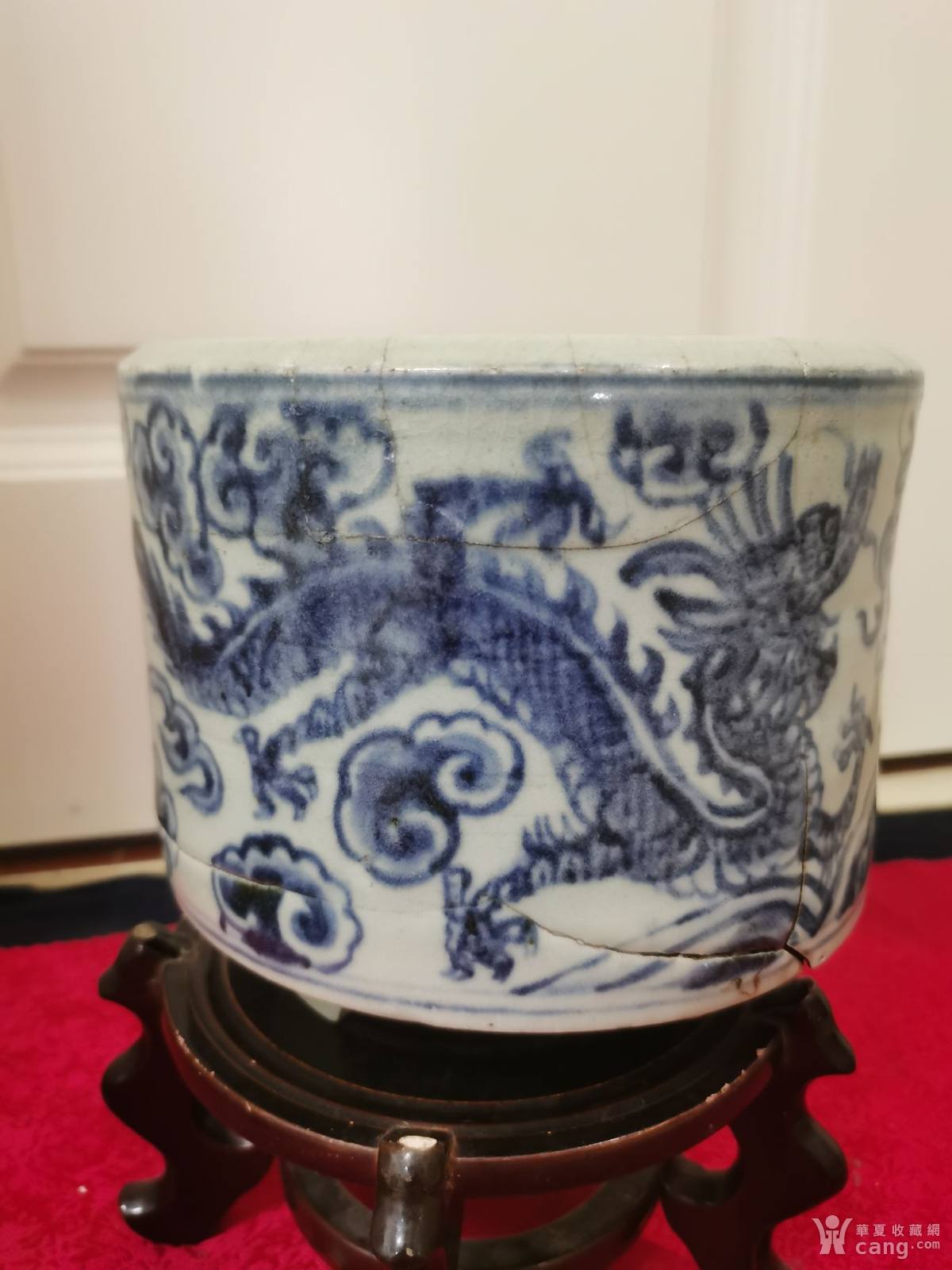 明代万历青花三足筒式大香炉