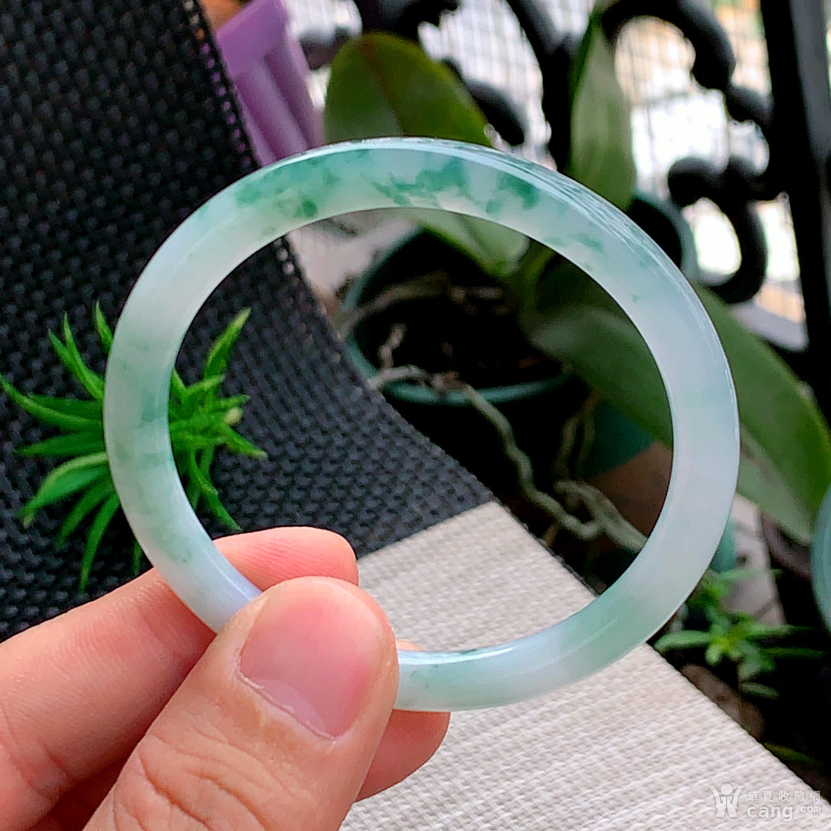 缅甸天然翡翠A货冰透水润飘绿圆条手镯57.5圈口