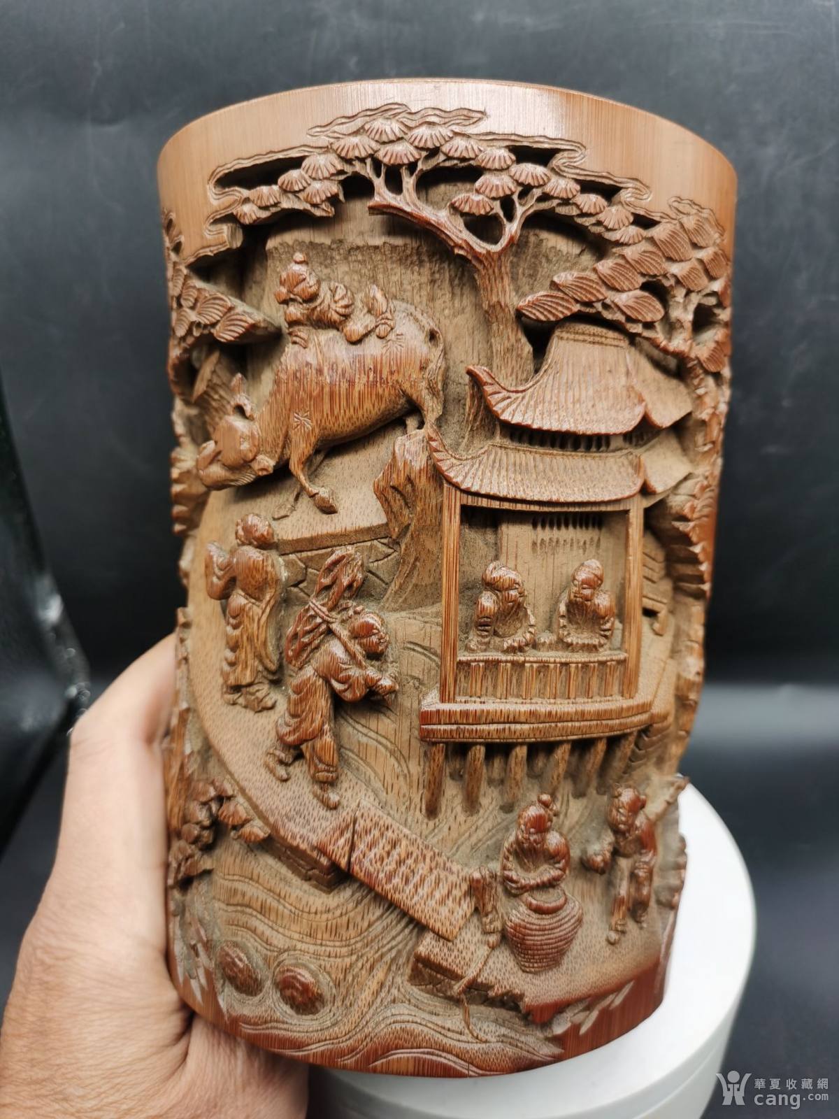 精工渔樵耕读竹雕笔筒