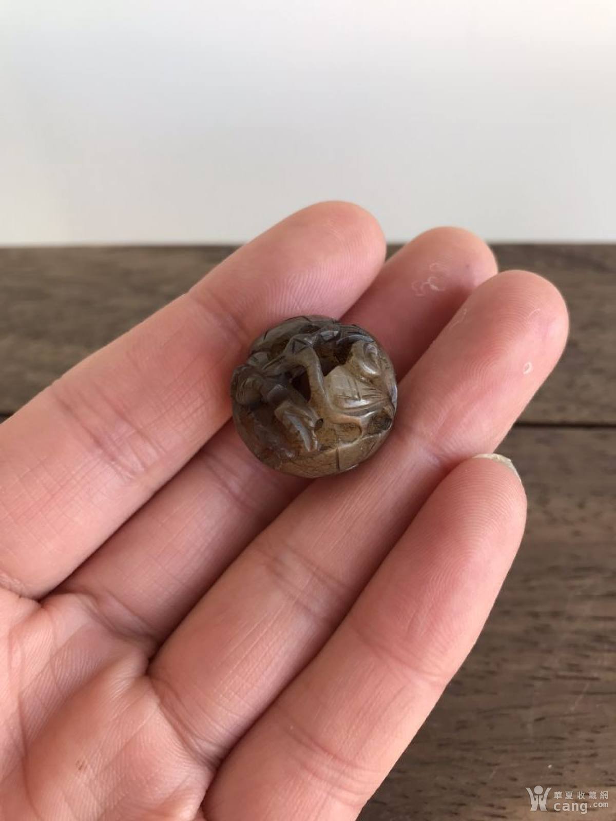 清代和田玉满工花鸟珠子