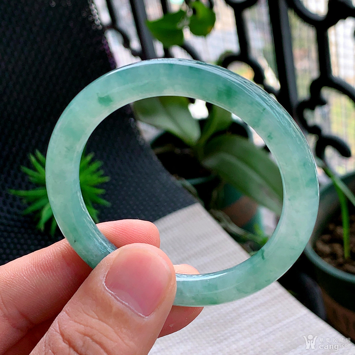 缅甸天然翡翠A货冰透水润飘绿圆条手镯52圈口