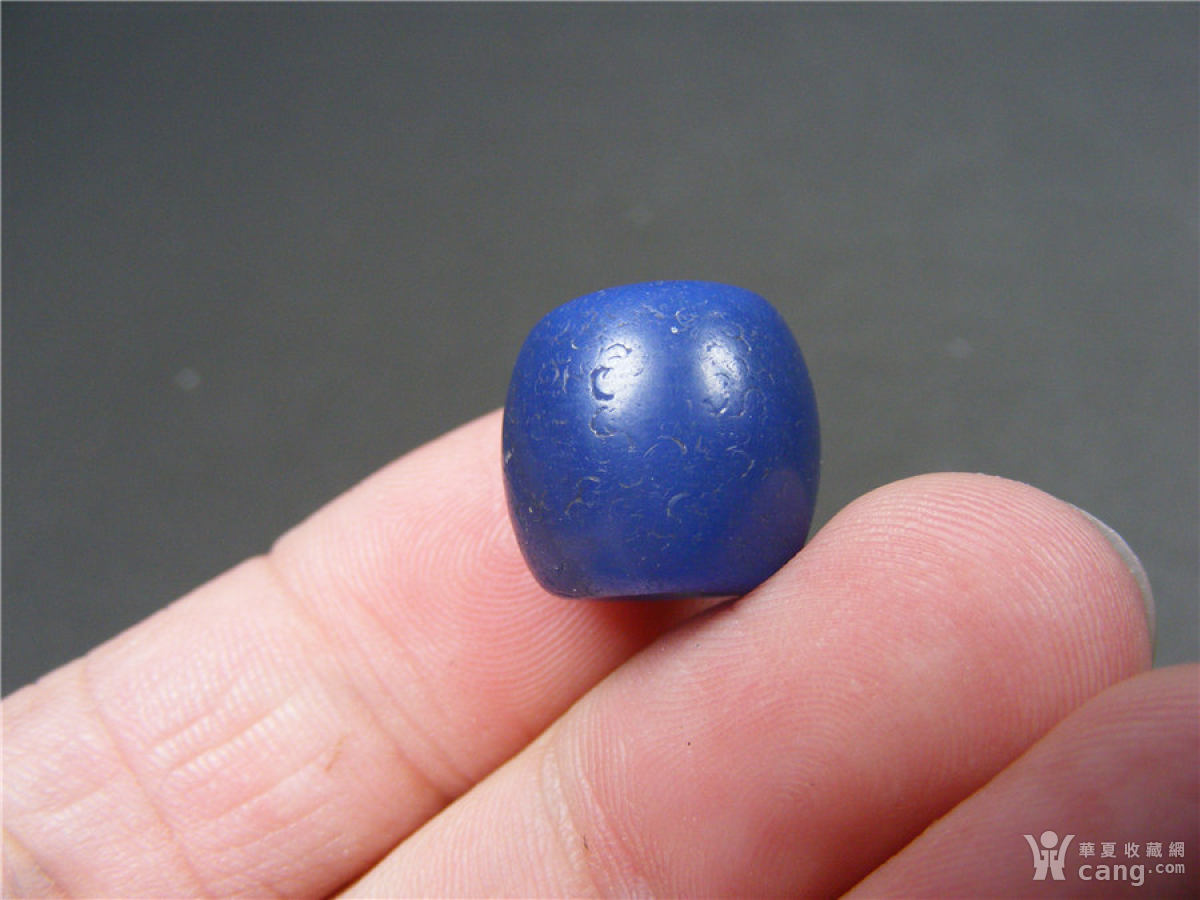 6 西亚上百年的老蓝色缠丝玛瑙鼓腹直筒中号勒子珠