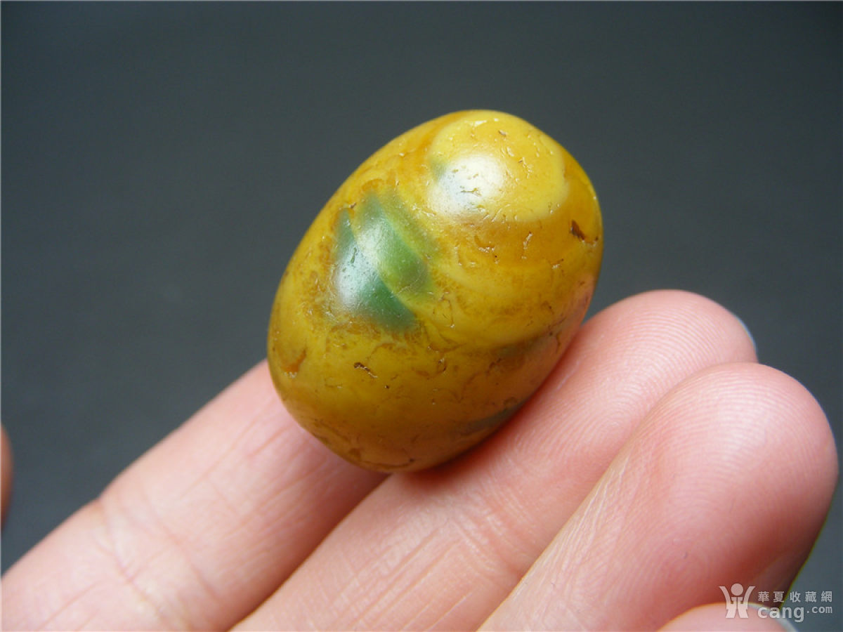 42 老西亚上百年的老黄绿色缠丝玛瑙鼓腹大枣型勒子珠