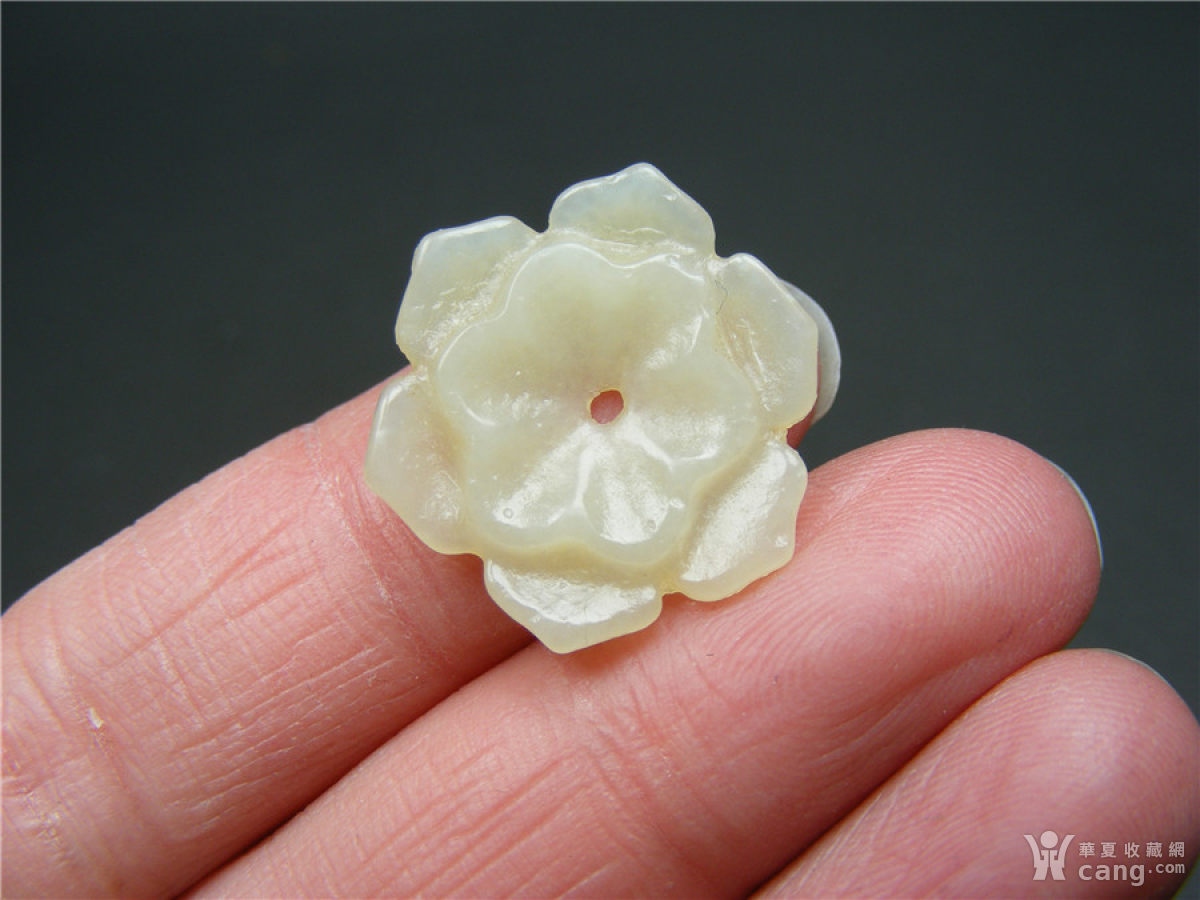43几十年的和田玉打洼手工雕双层六瓣小玉花坠