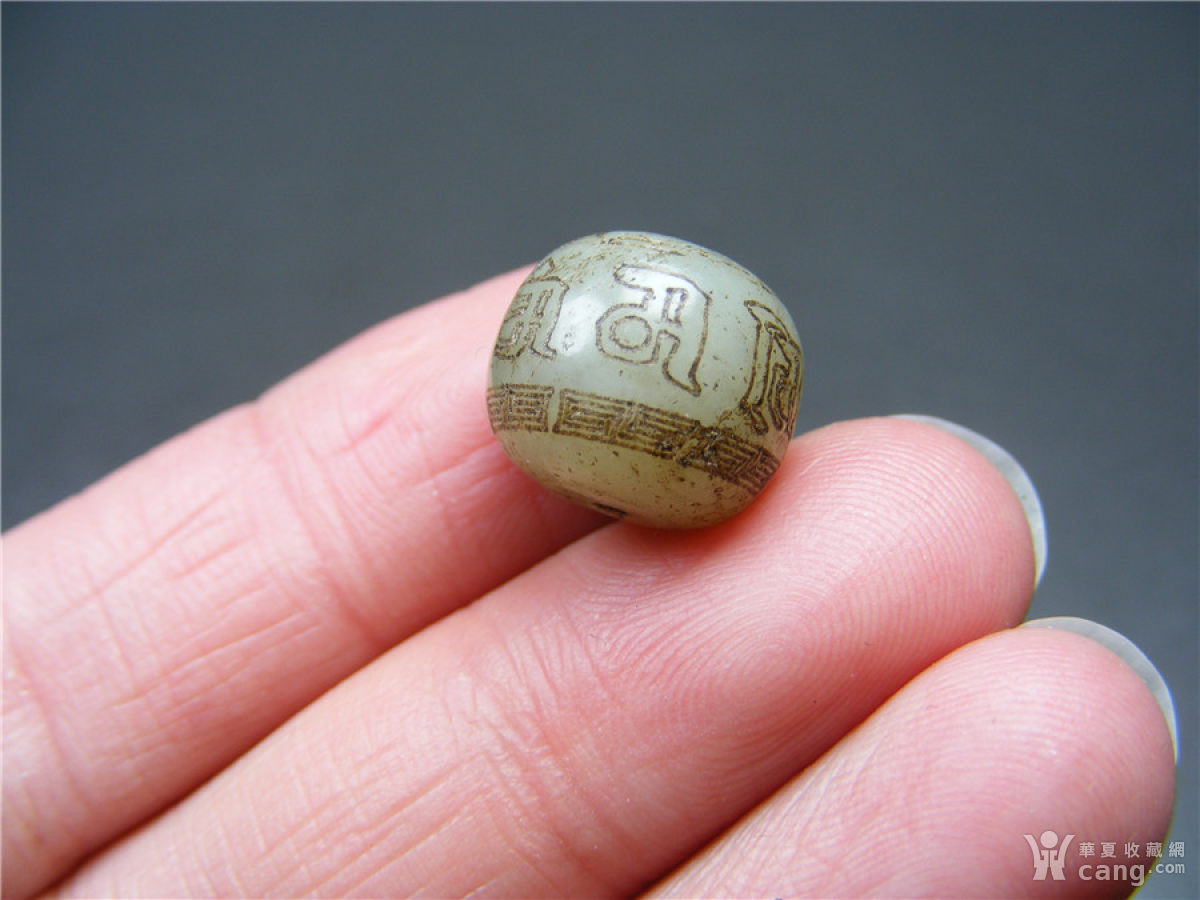 42老库存 几十年的和田青白玉满工阴刻回纹金文小圆扁勒子珠