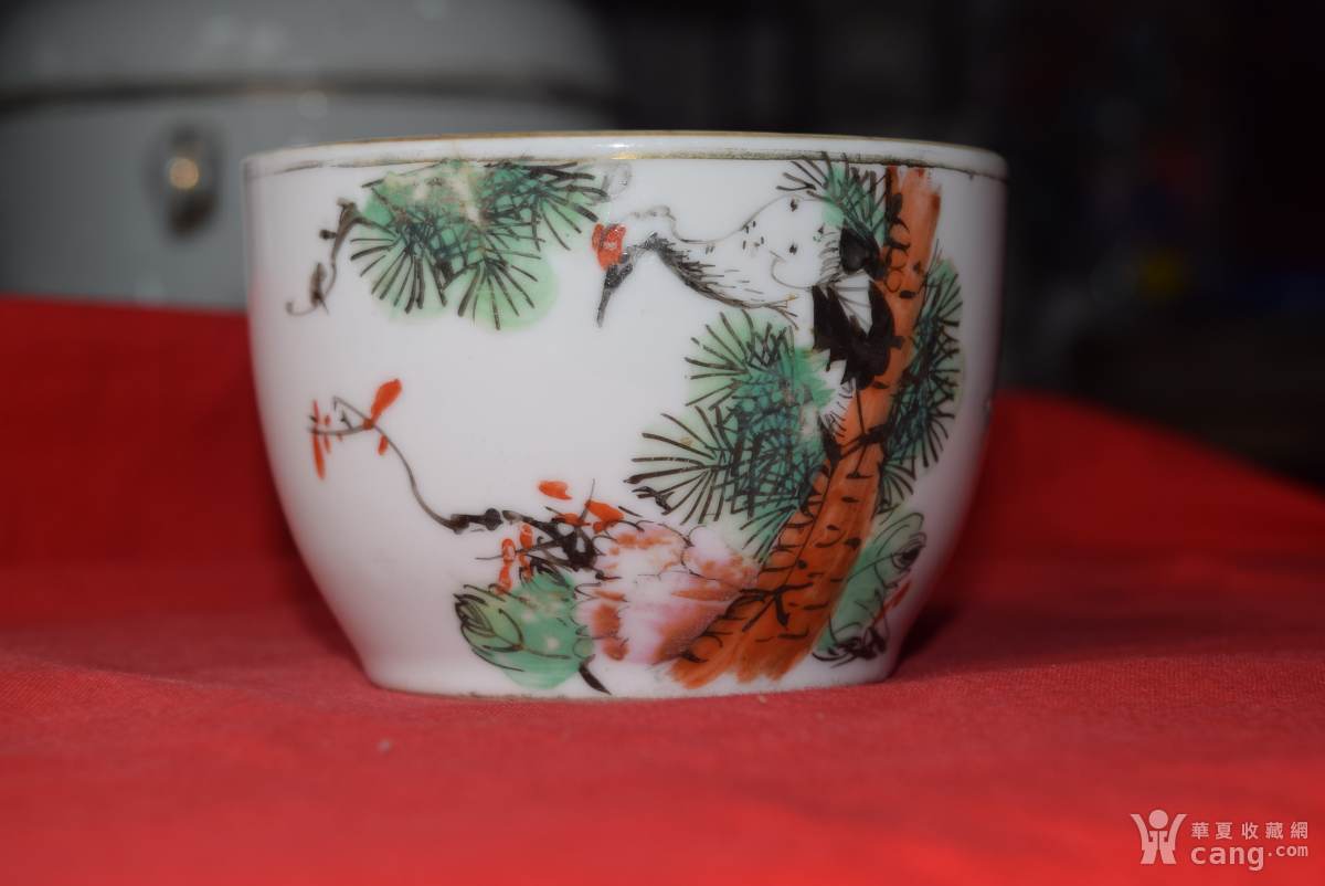 民国细路粉彩松鹤纹罐(包老)