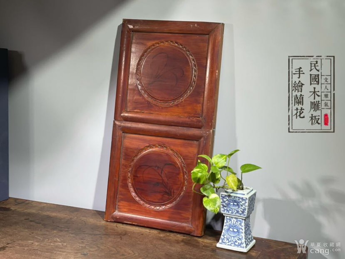 HBF0001 民国手绘兰花 | 木雕板一对