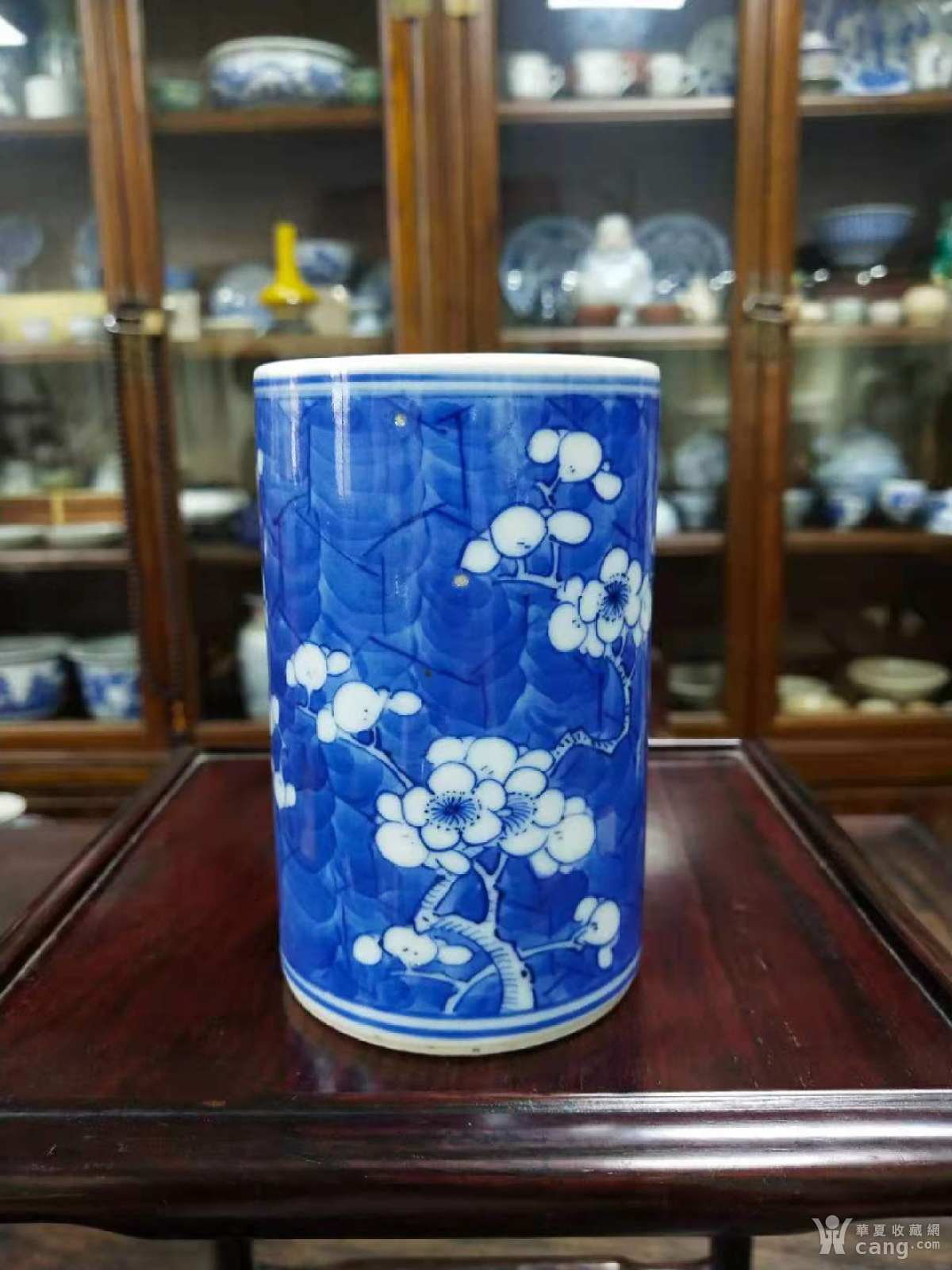 (年底特惠)清晚期青花冰梅题材文房笔筒(已鉴定)