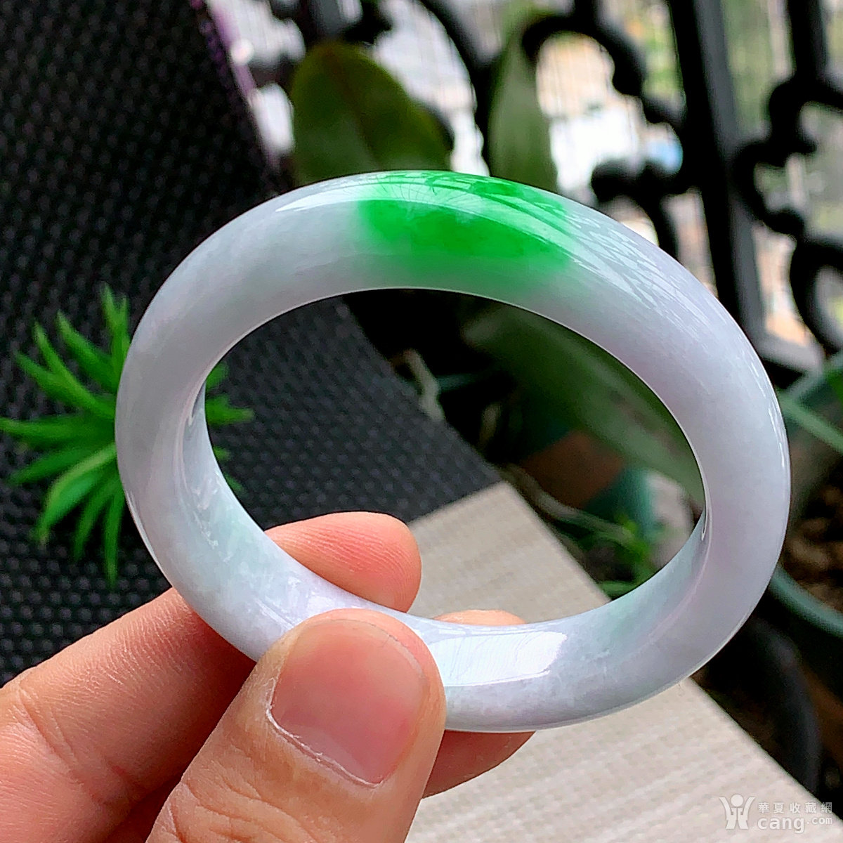 缅甸天然翡翠A货冰润飘阳绿宽边手镯53.5圈口