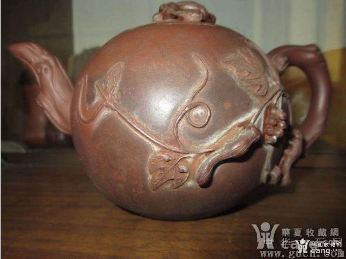 晚清民国松鼠葡萄紫砂壶