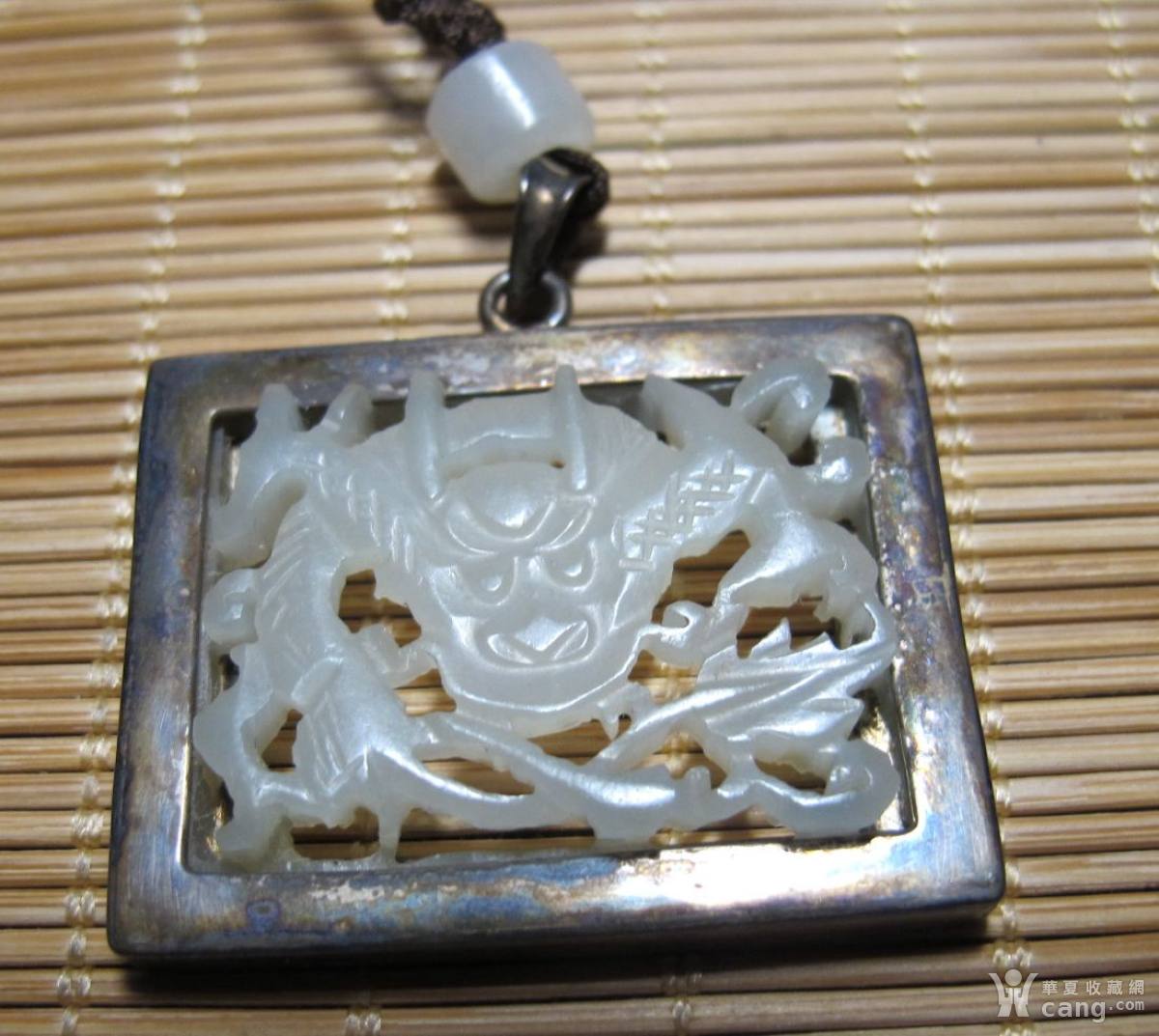 明代和田白玉花片透雕龙后包银ys15-52
