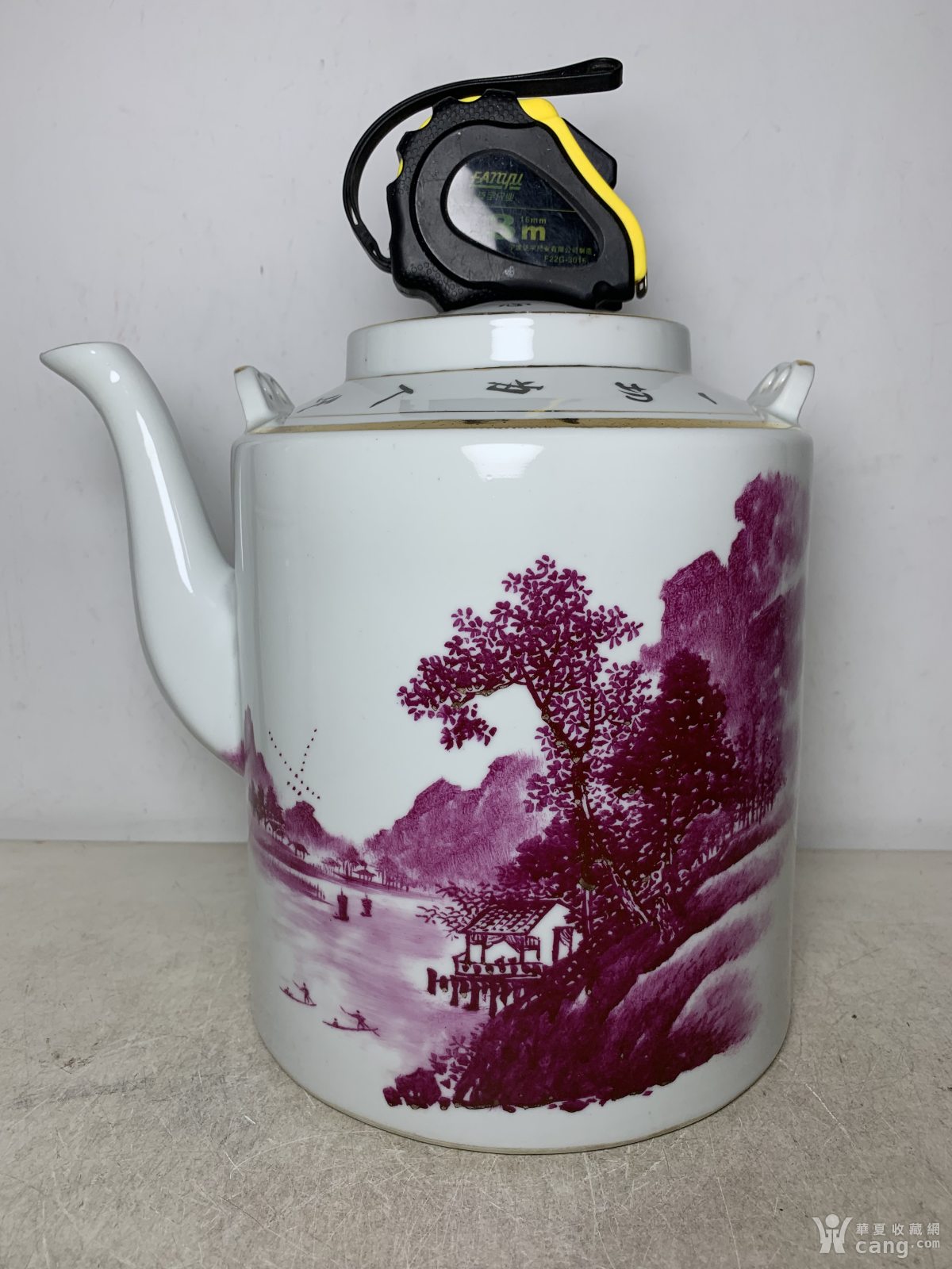 罕见1975年手绘胭脂红山水大号文*茶壶