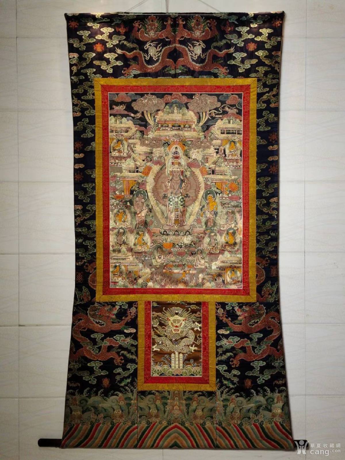 西藏回流收藏级 纯手绘天然矿物颜料描金真皮唐卡佛像【千手观音