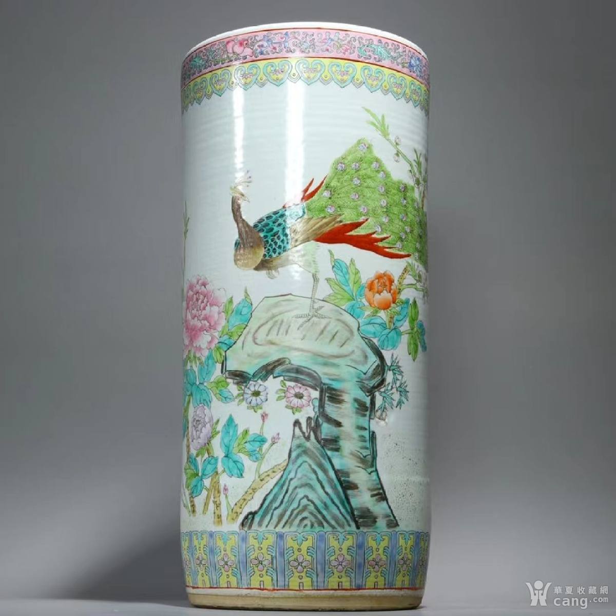 60年代左右粉彩花鸟诗文箭筒