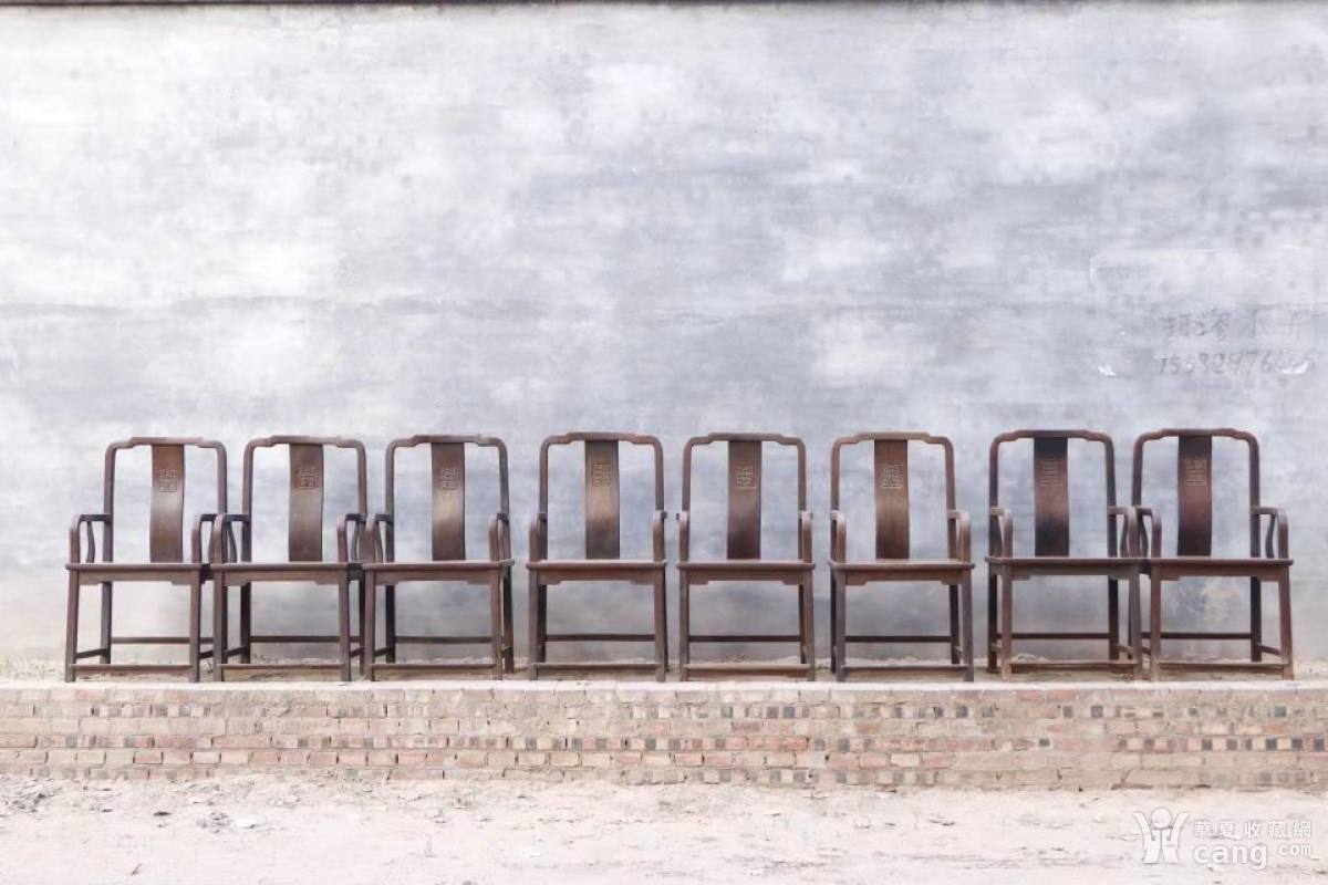 清中期 老红木寿字纹南官帽椅 八具一堂; 南