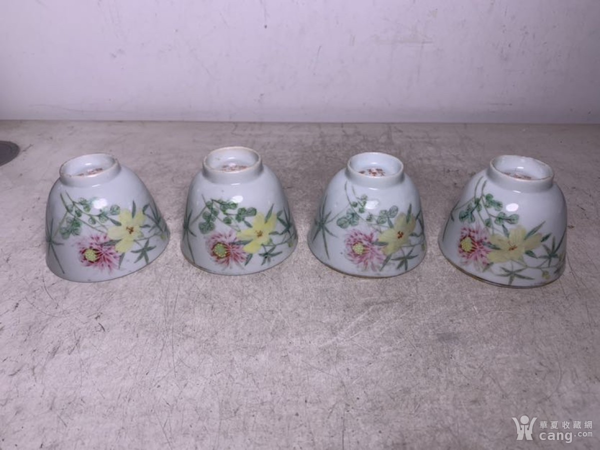 四个民国江西瓷业工厂粉彩花卉茶杯