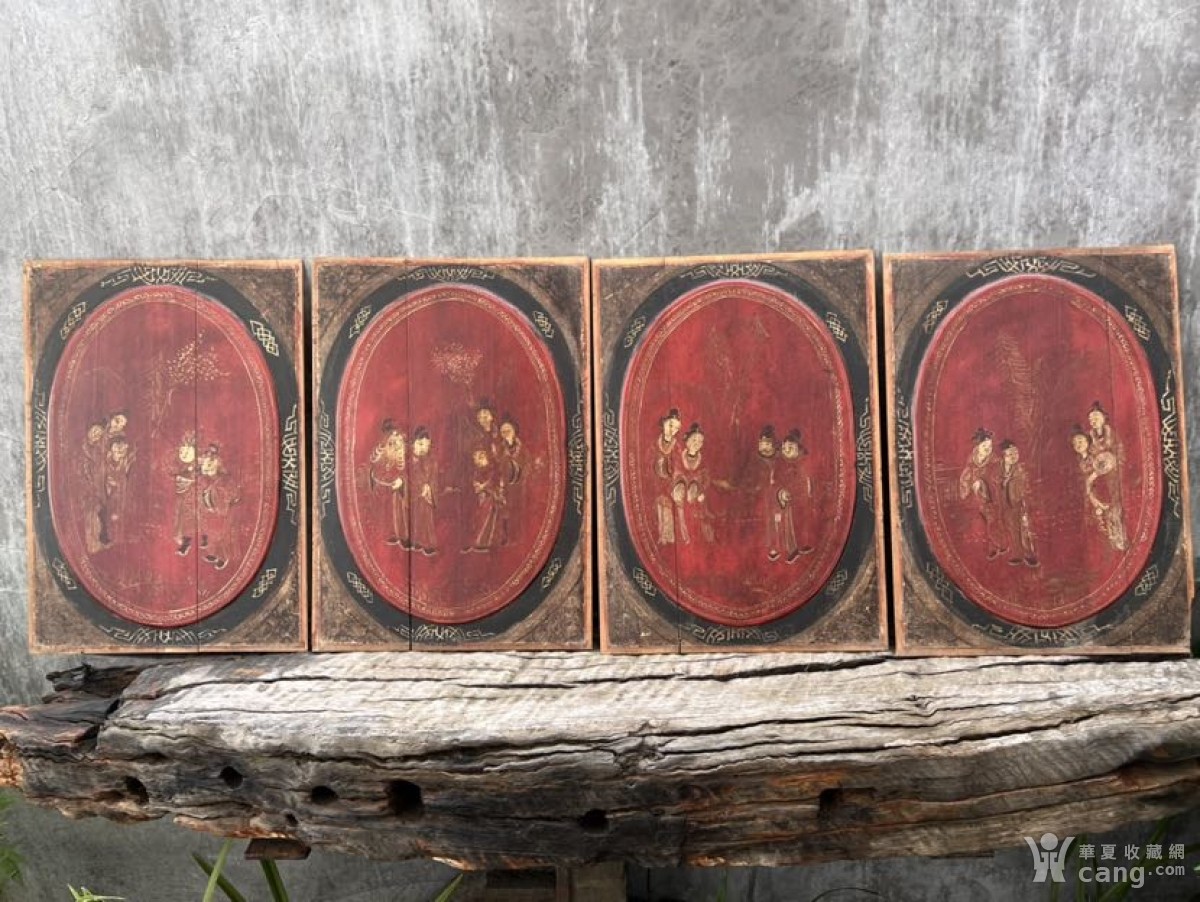 4片老画板老花板木雕板画工漂亮