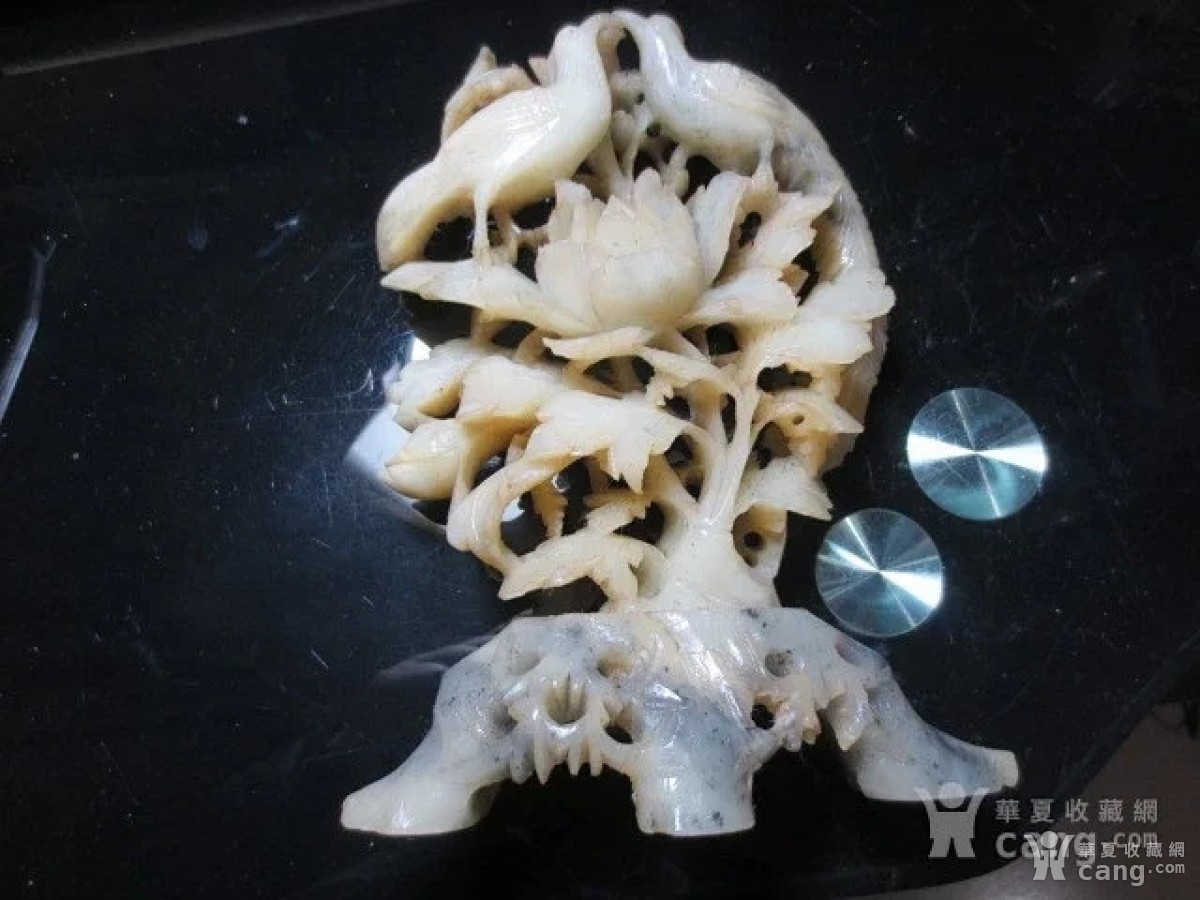 老寿山石透雕花鸟摆件19x14x5cm。