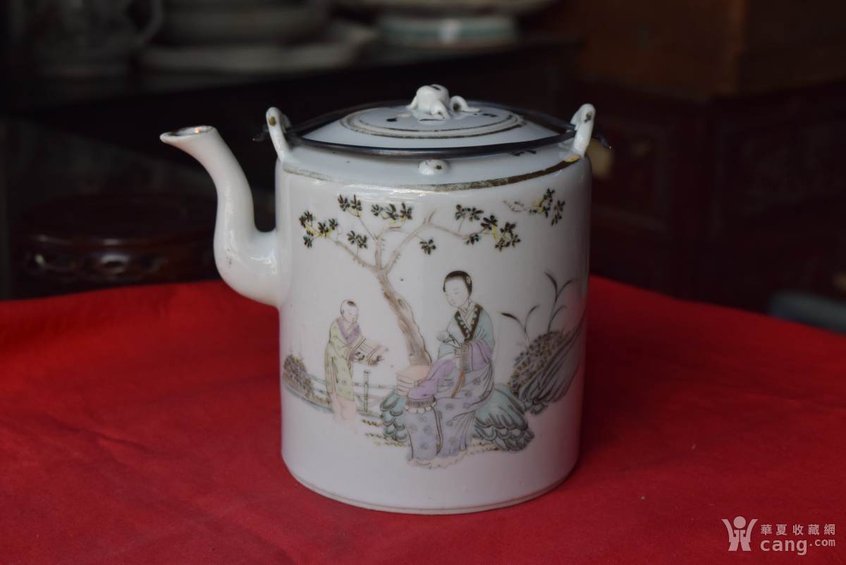 民国早期瓷绘名家傅义祥作品粉彩仕女人物提梁壶(包老)