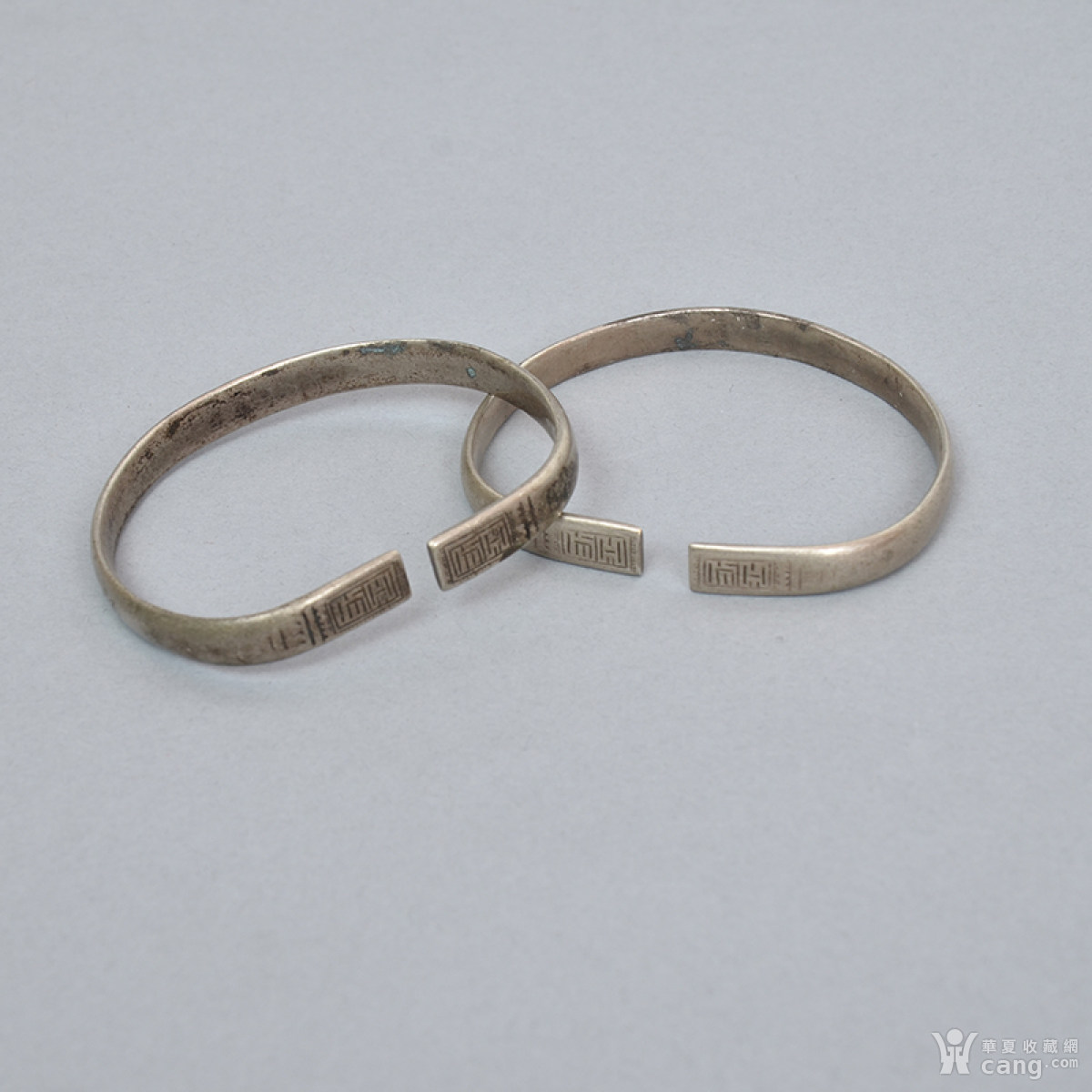 【保真能典当】晚清民国 银手镯一对(二十七)