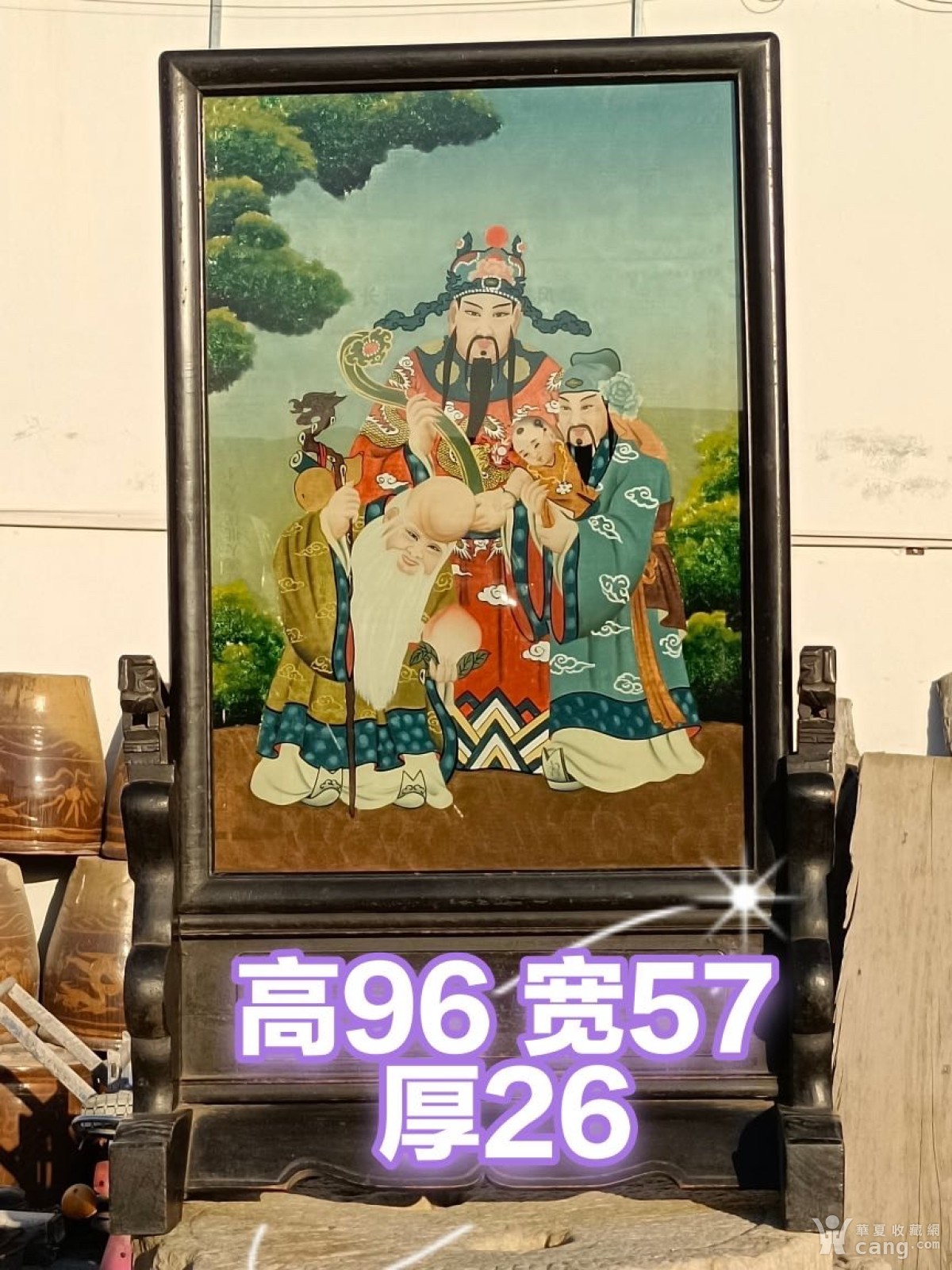清代 楠木 玻璃画插屏 福禄寿三星报喜 画工精湛 人物栩栩